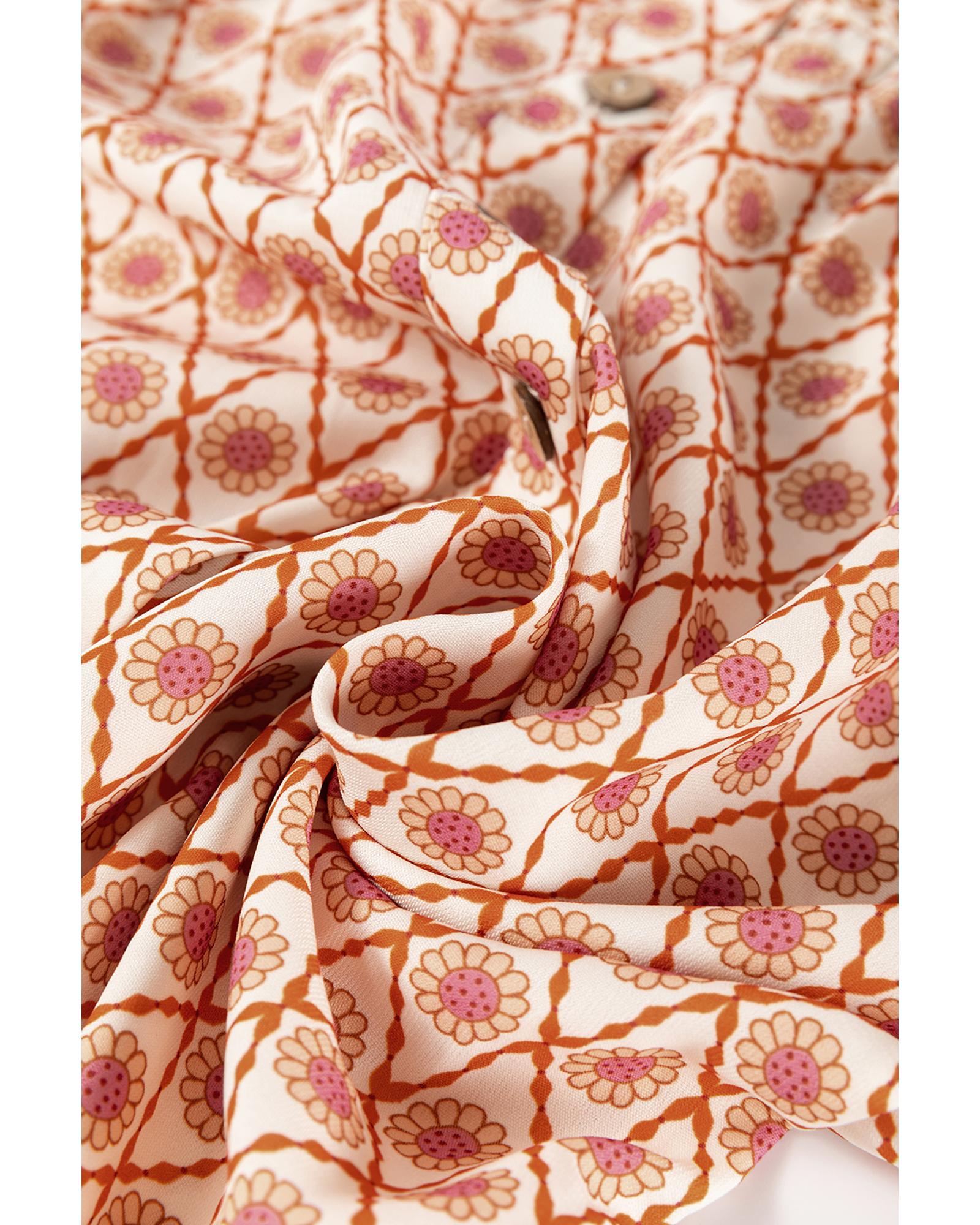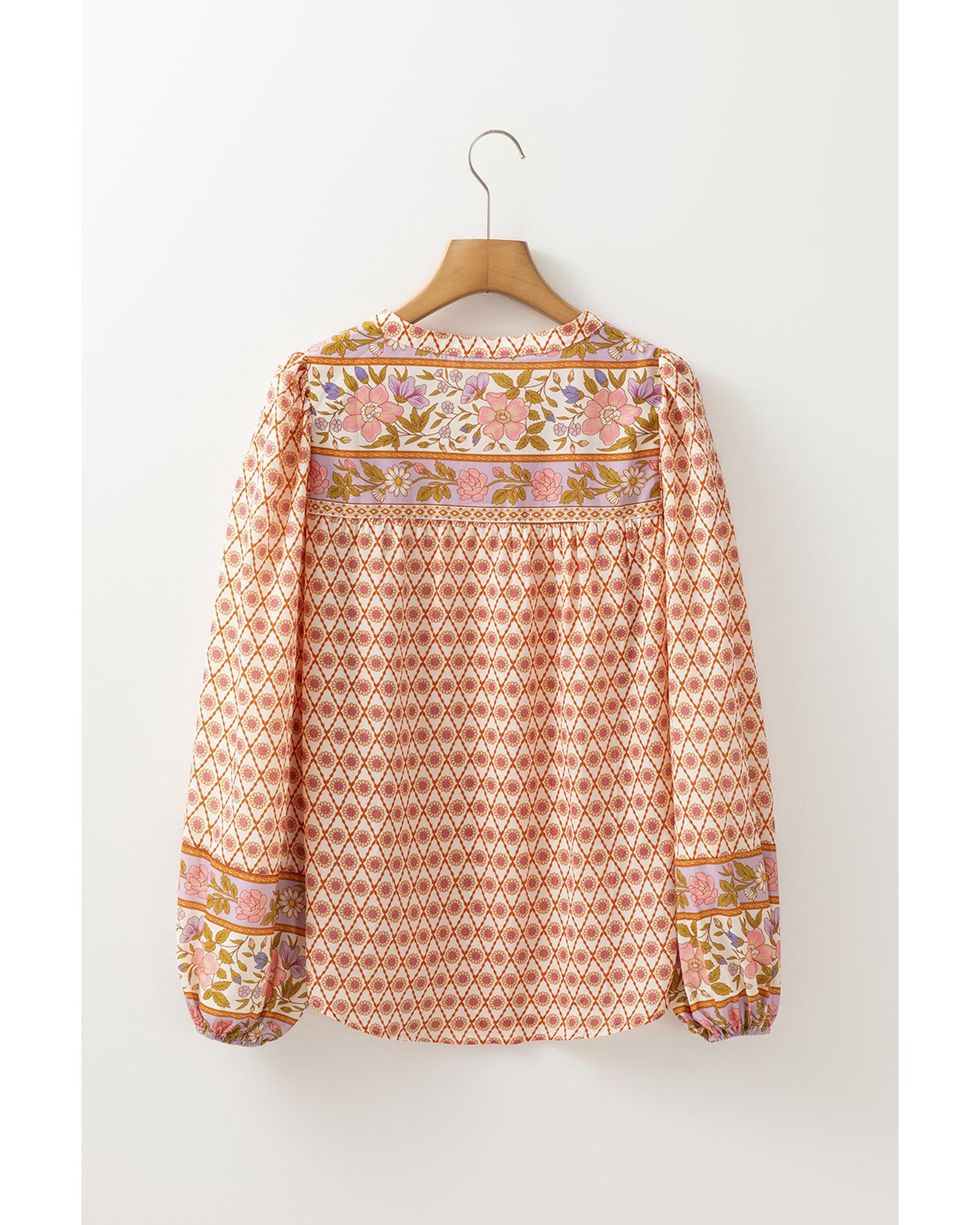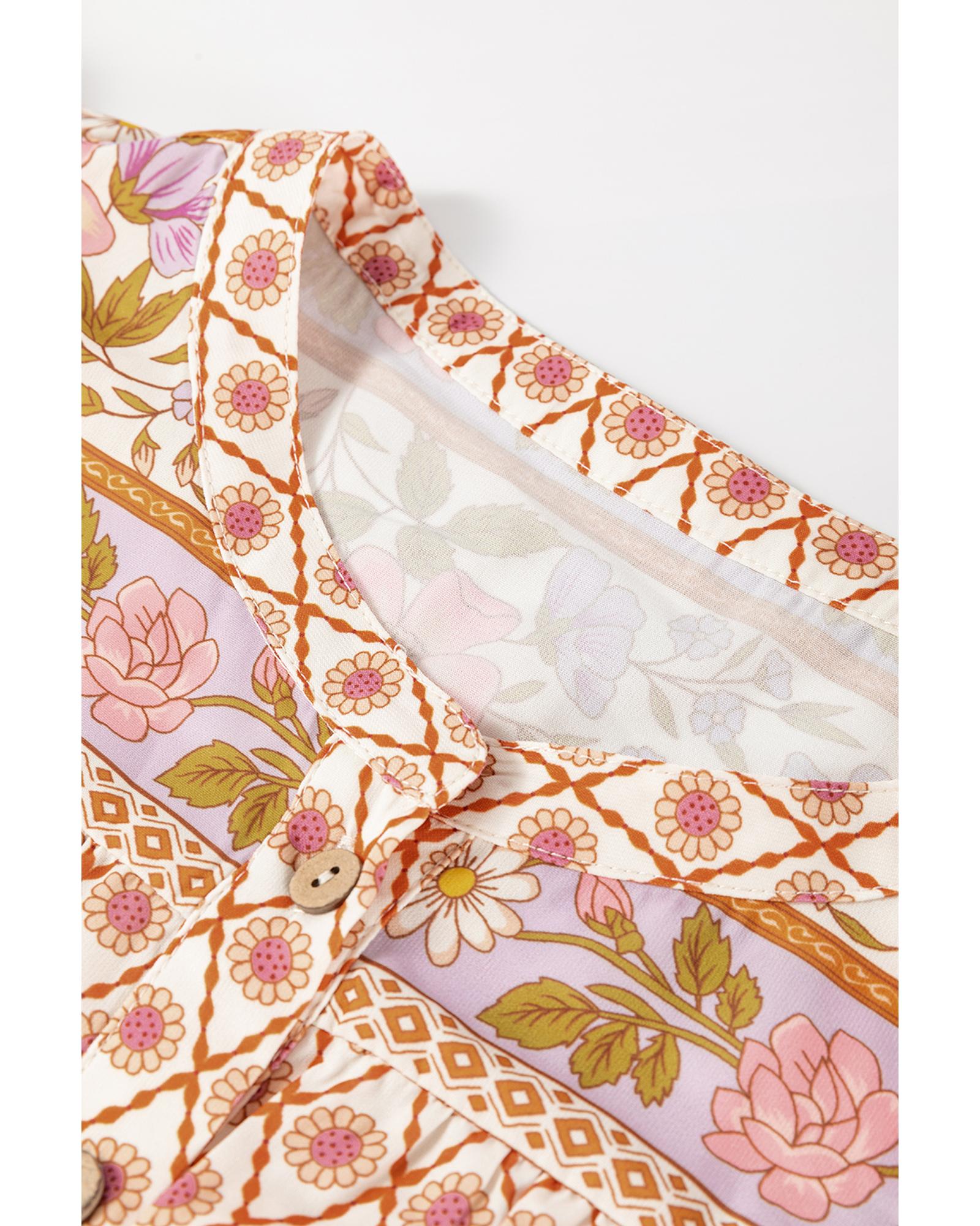- 1 x Multicolour Boho Floral Mixed Print Puff Sleeve Shirt
