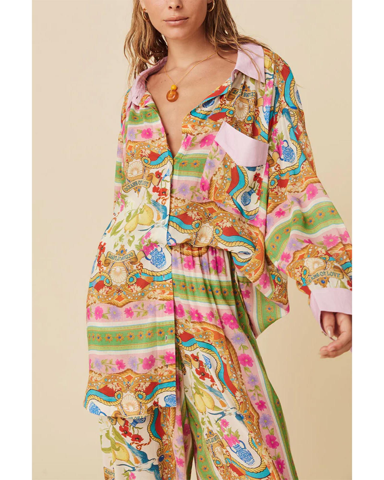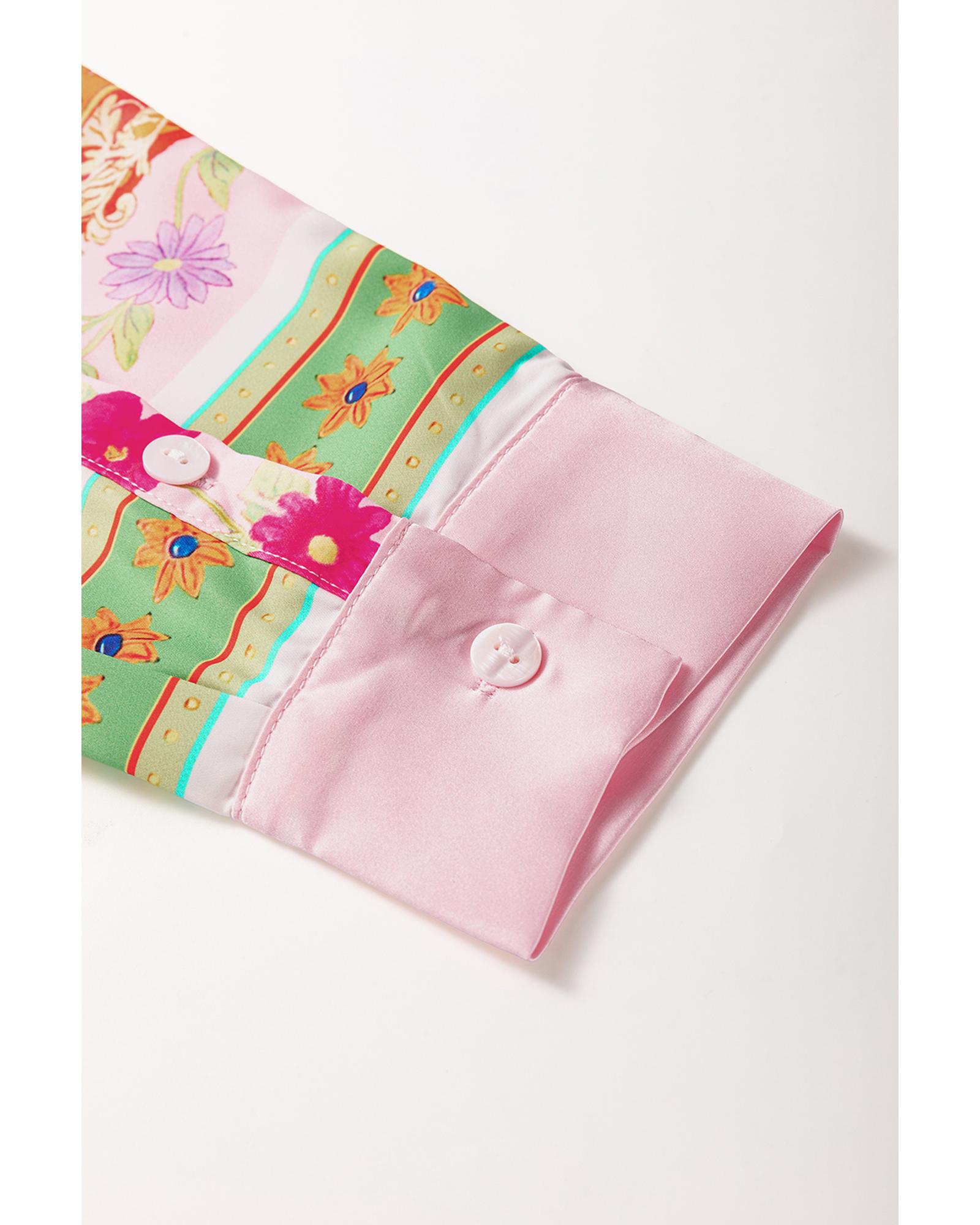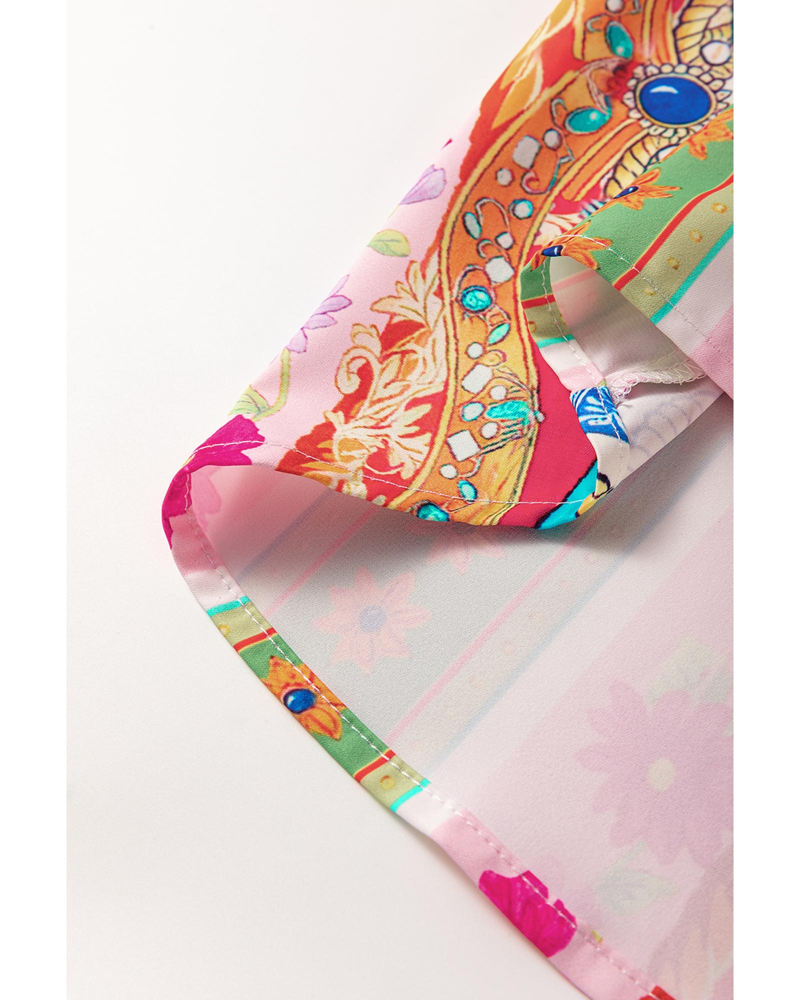 Multicolour Boho Floral Print Buttoned Long Sleeve Shirt Dress – S