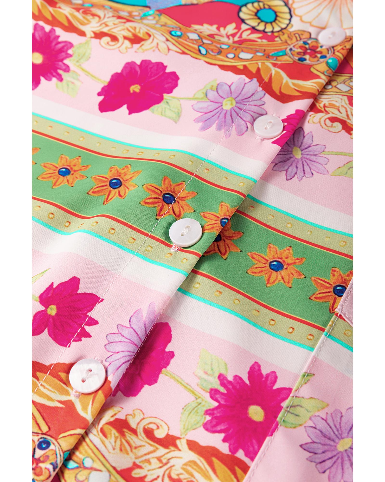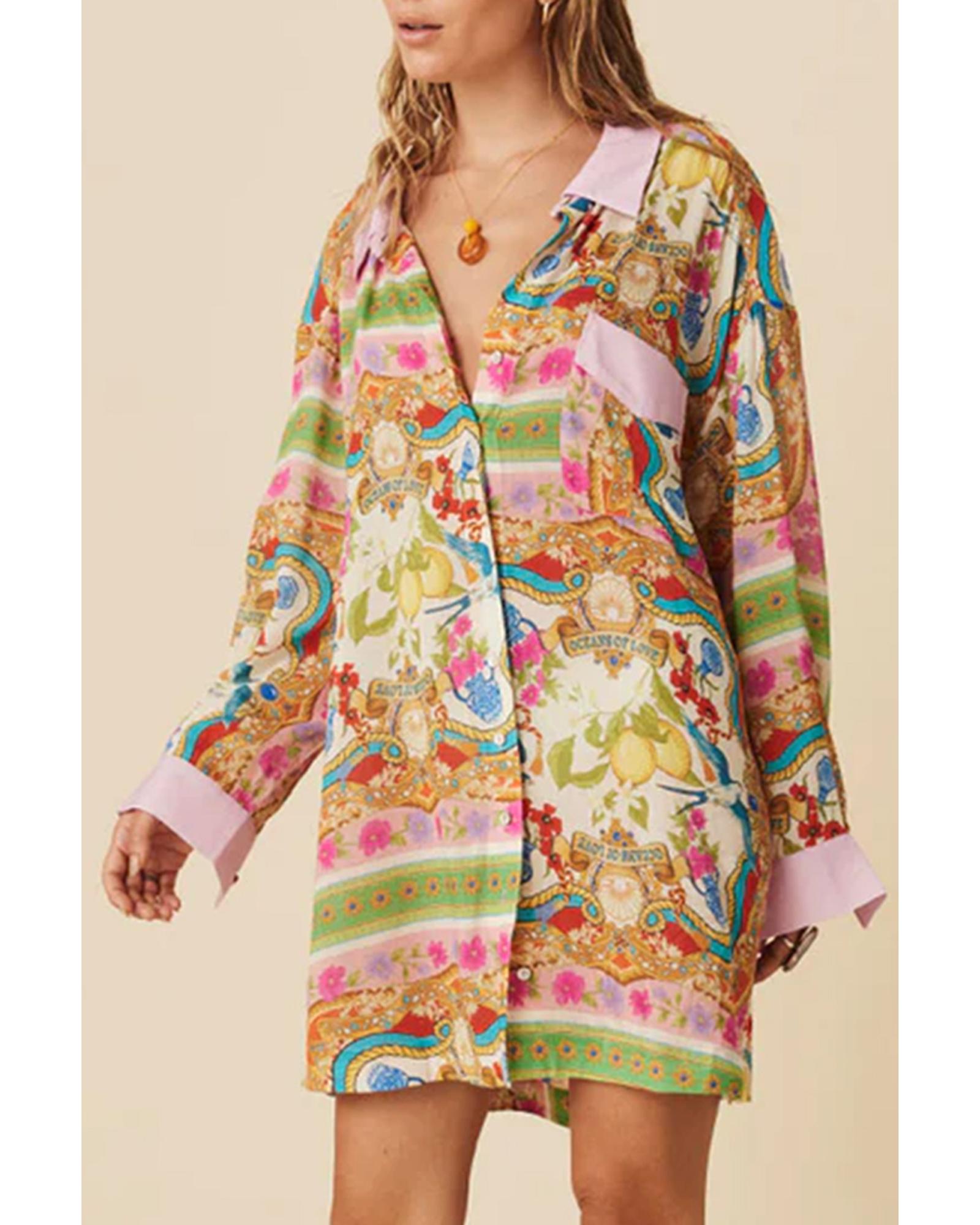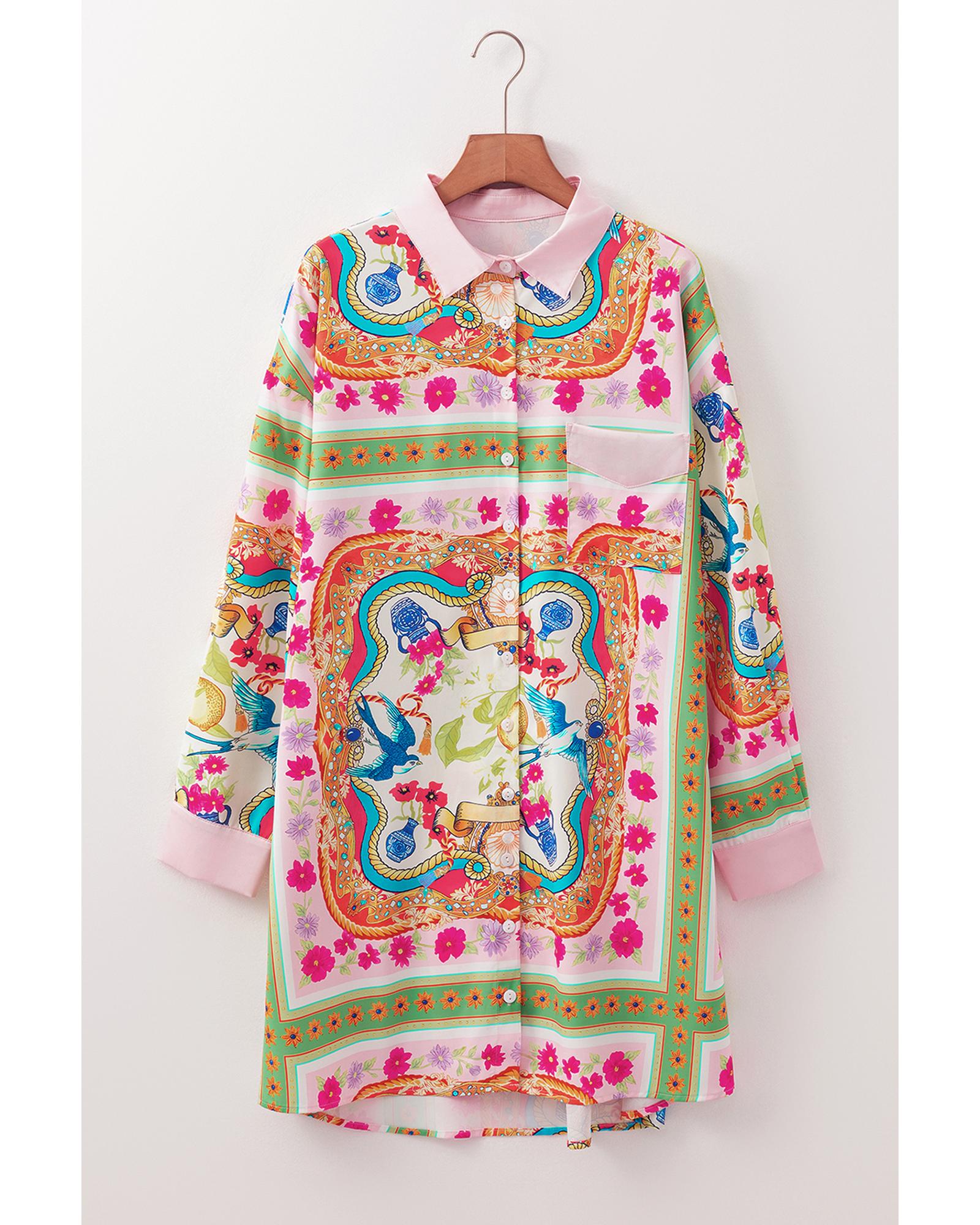 Multicolour Boho Floral Print Buttoned Long Sleeve Shirt Dress – XL
