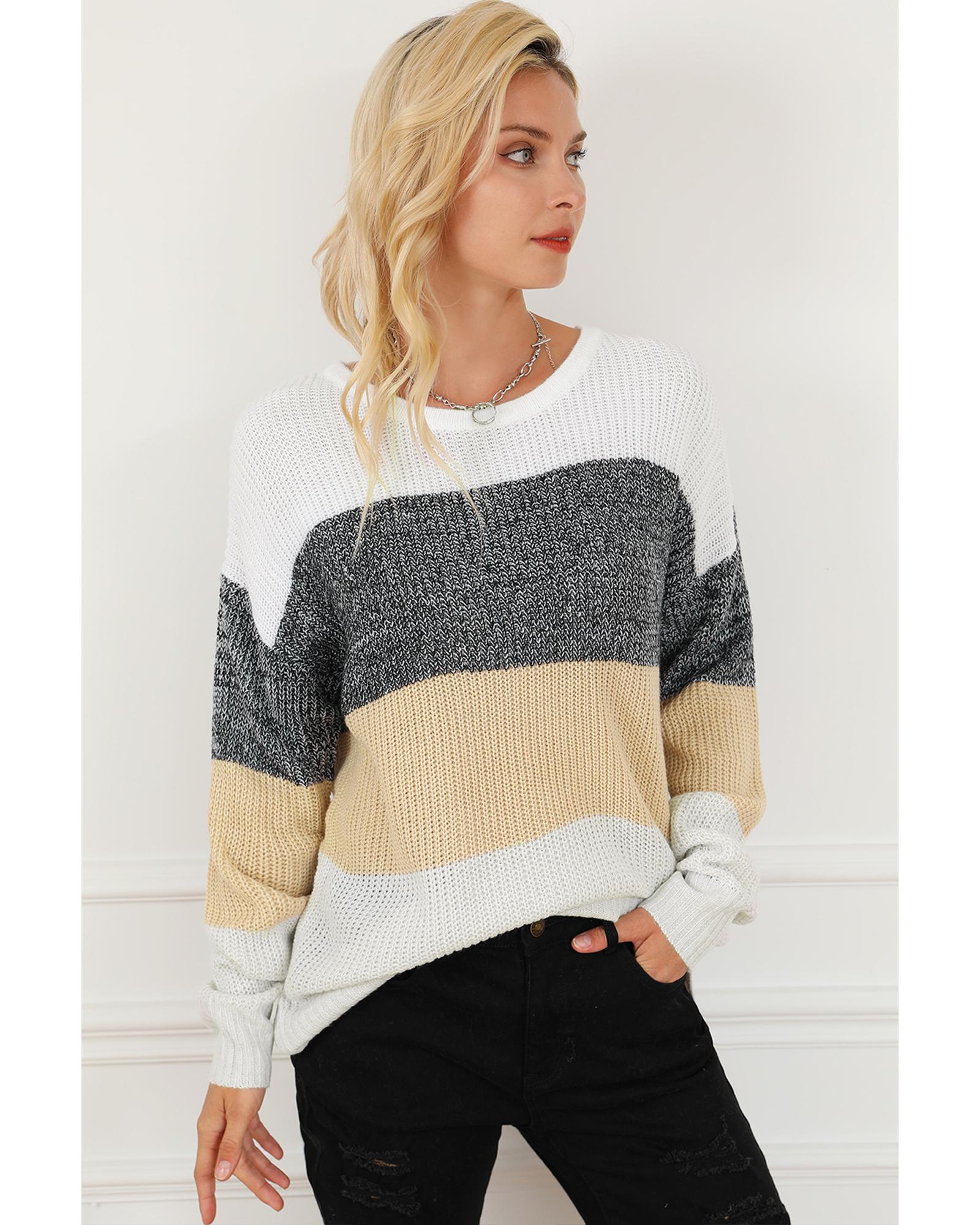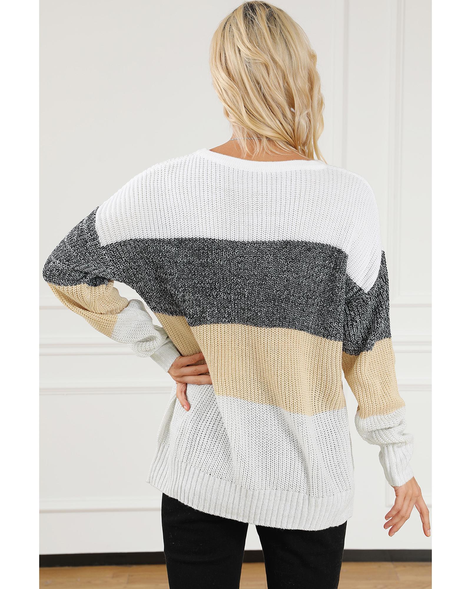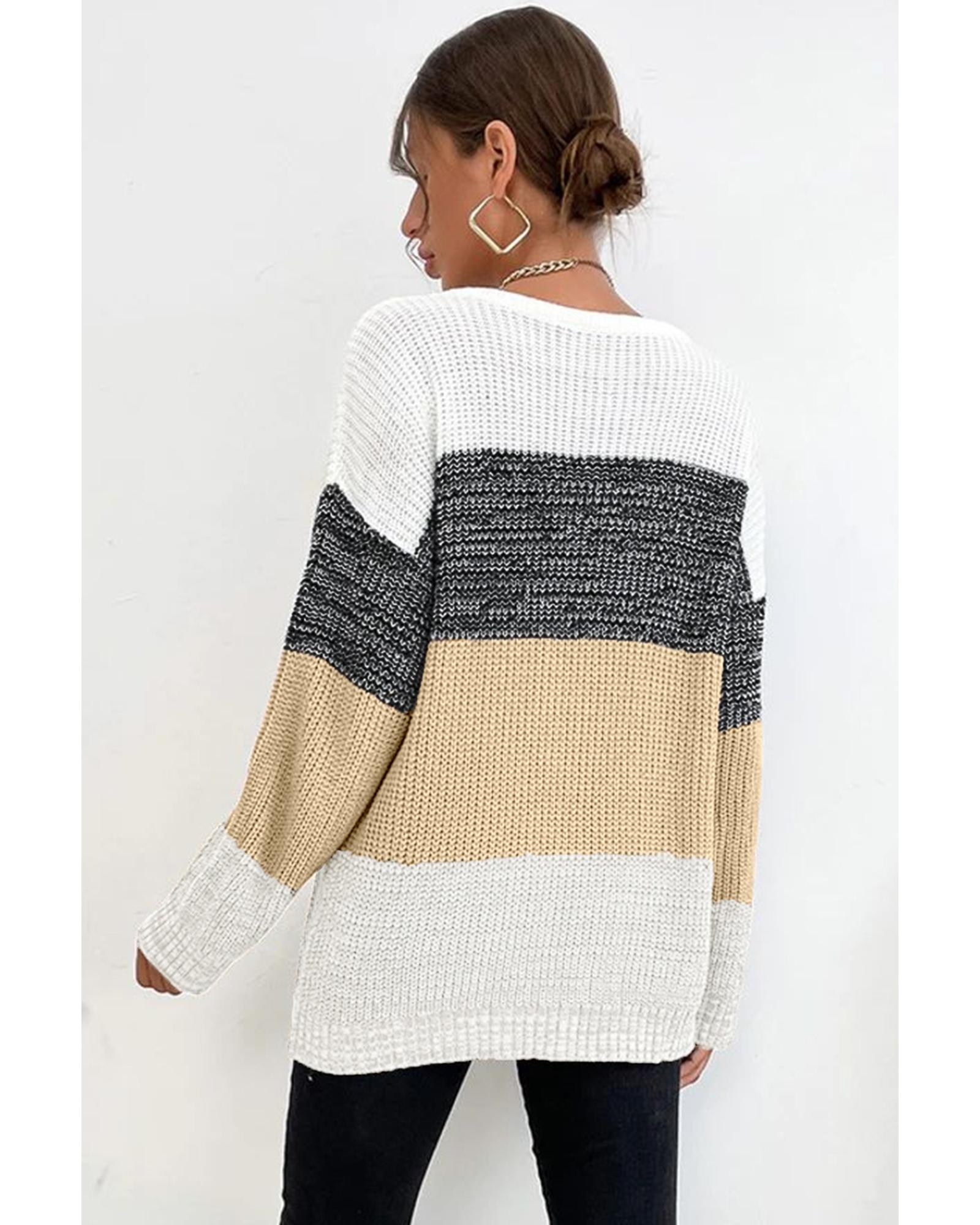 Multicolour Color Block Drop Shoulder Knit Sweater – M