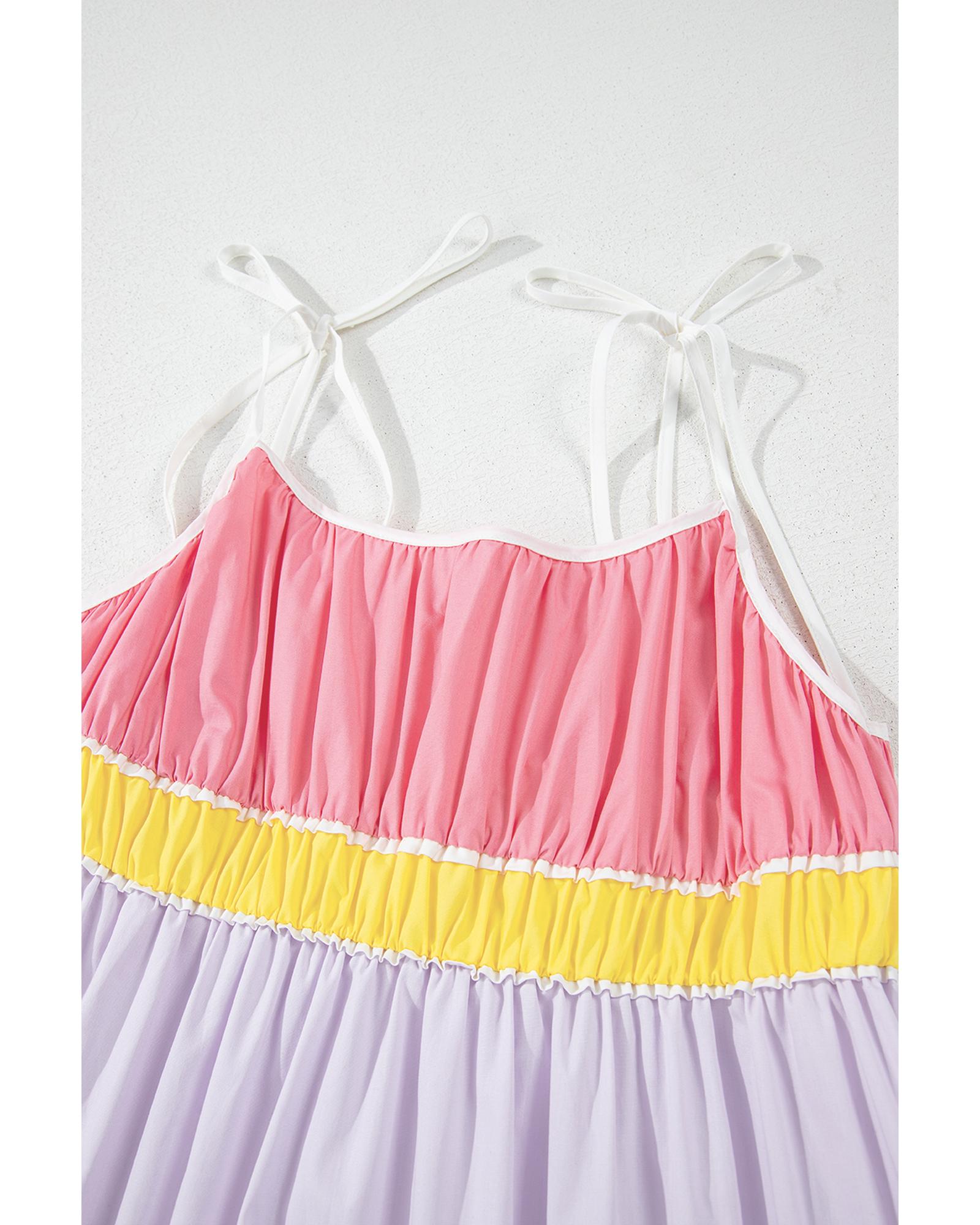 Multicolour Colorblock Self-tie Straps High Waist Flowy Maxi Dress with Pockets – XL