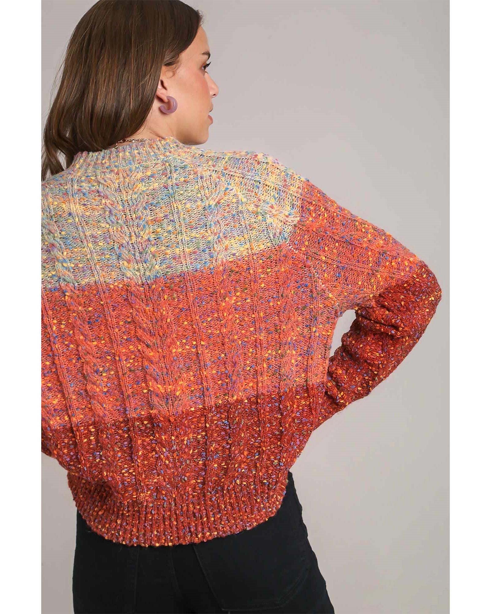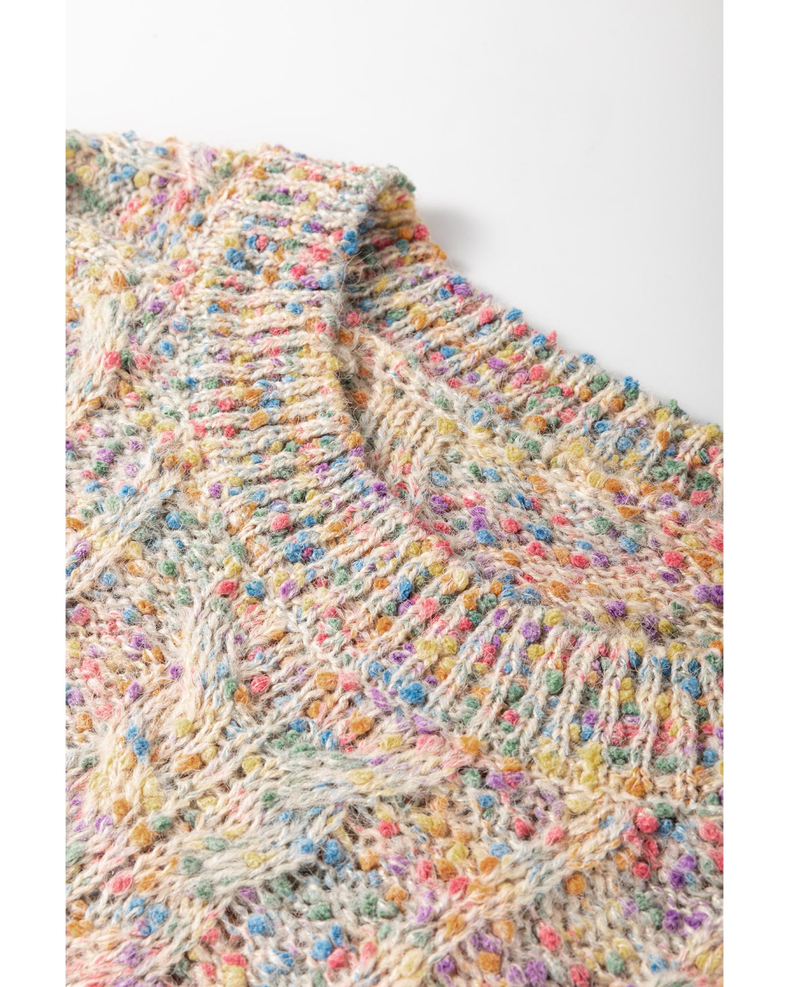 This colorful confetti wool ball knitted sweater features a vibrant and playful design, perfect for adding a festive touch to your wardrobe. Crafted with a comfortable knitted construction, it provides warmth and style for various occasions.