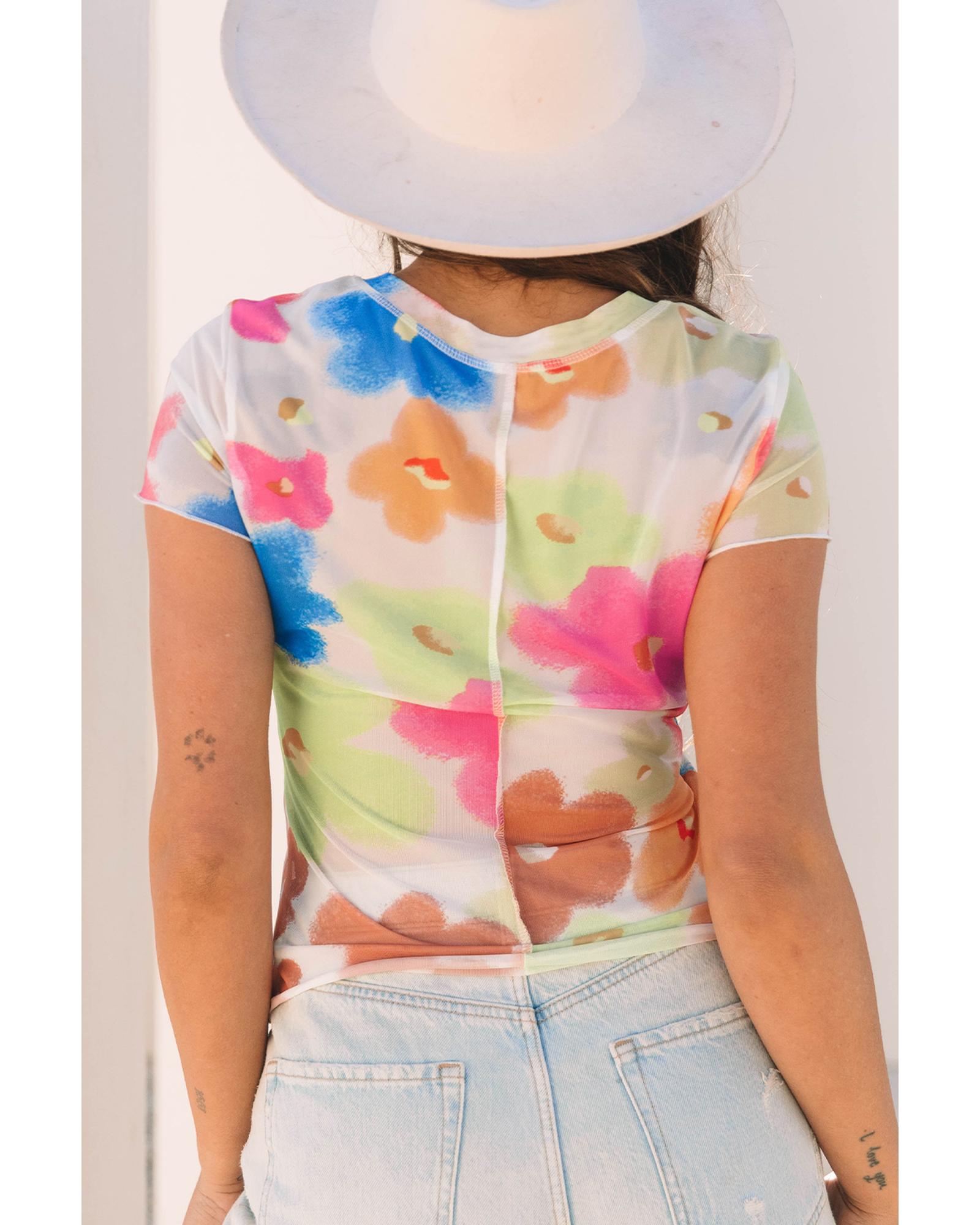 Package Content: 1 x Multicolour Floral Mesh Lettuce Trim Cropped T-shirt