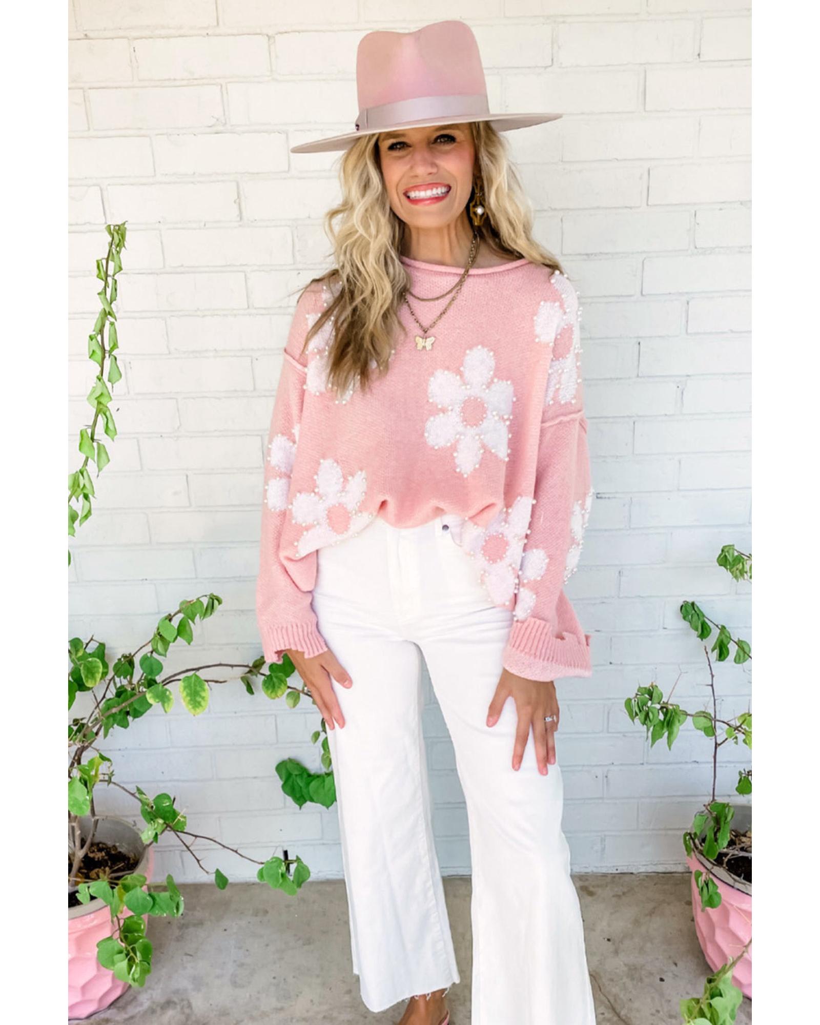 - Multicolour pearl beaded floral drop shoulder sweater