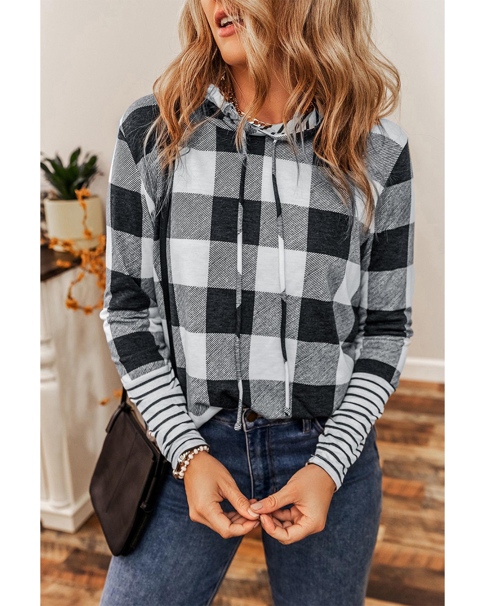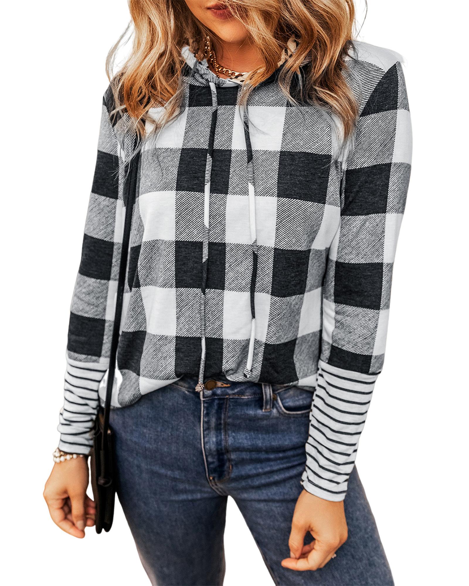 This multicolour plaid striped patchwork hoodie features a trendy fitted design that combines style and comfort. Its classic plaid and striped print, along with a casual pullover style, make it suitable for various ages and easy to pair with different outfits.