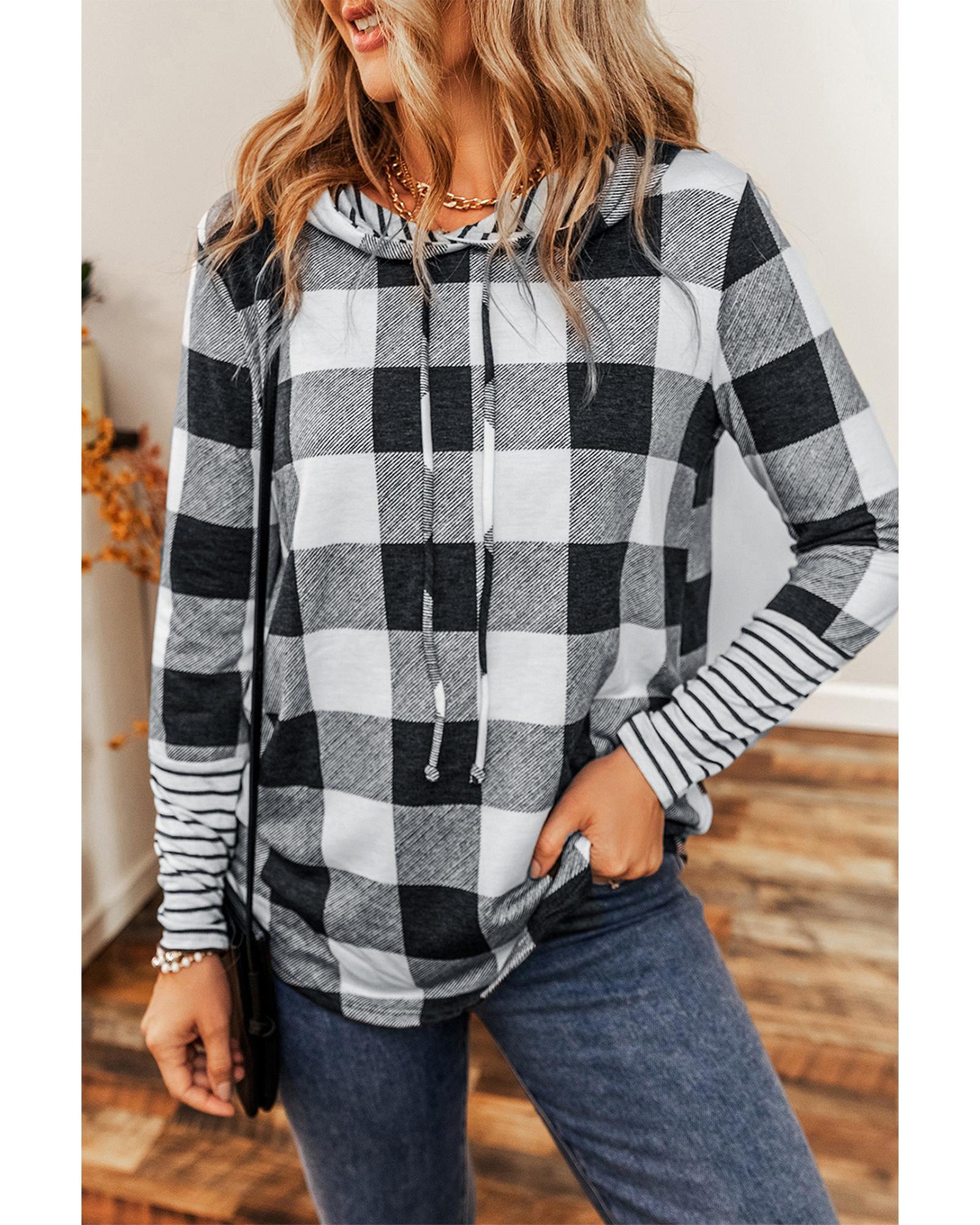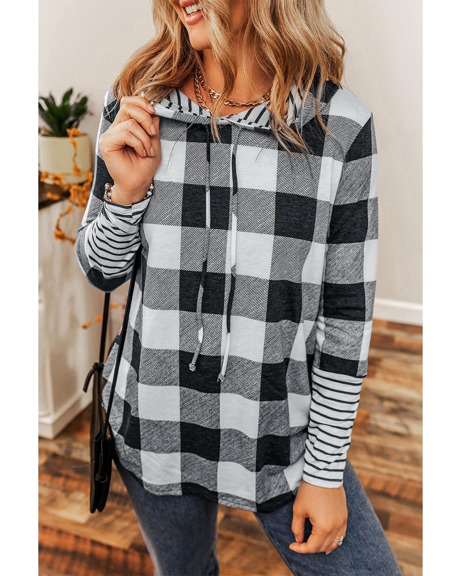 This multicolour plaid striped patchwork hoodie features a trendy fitted design that combines style and comfort. Its classic plaid and striped print, along with a casual pullover style, make it suitable for various ages and easy to pair with different outfits.