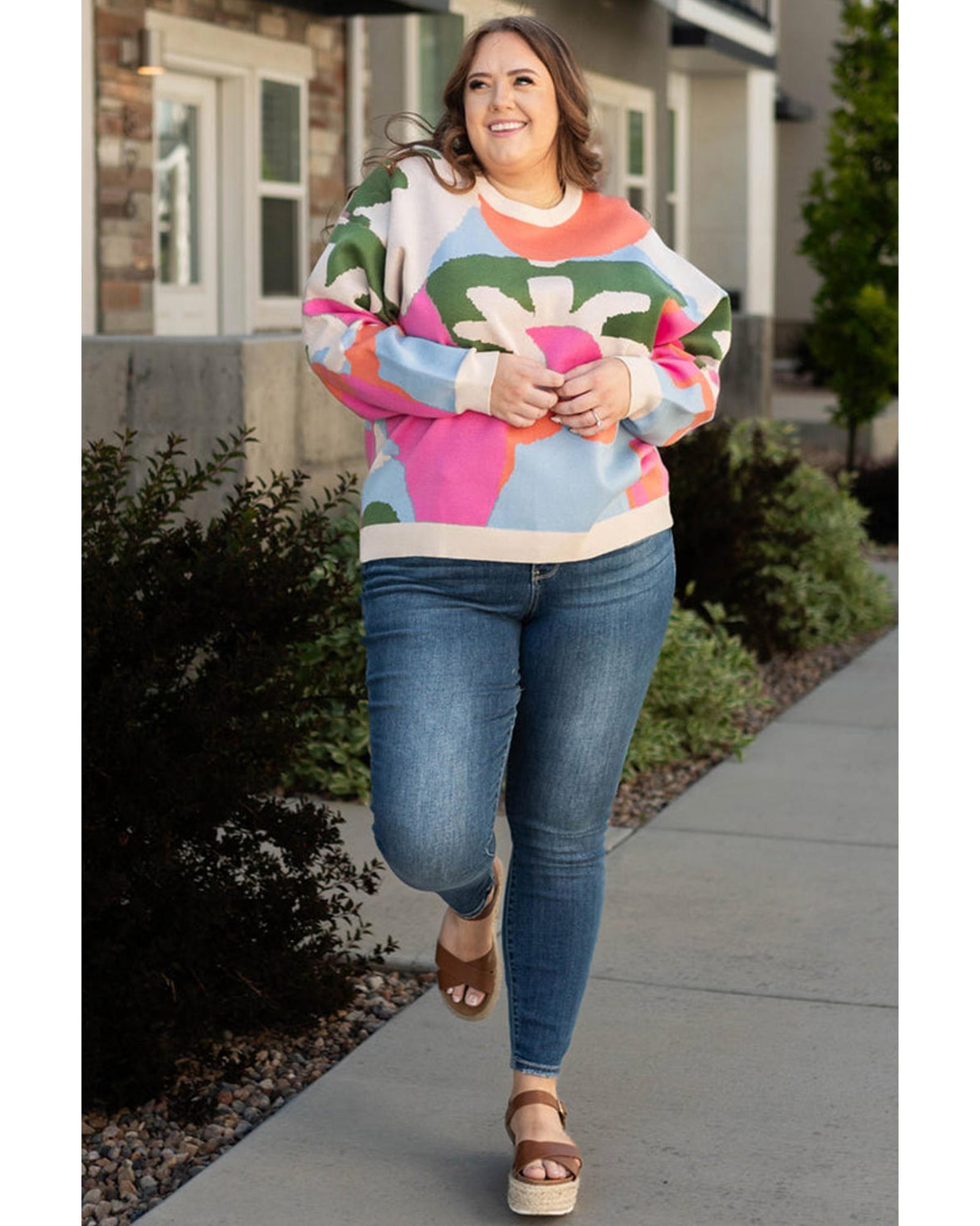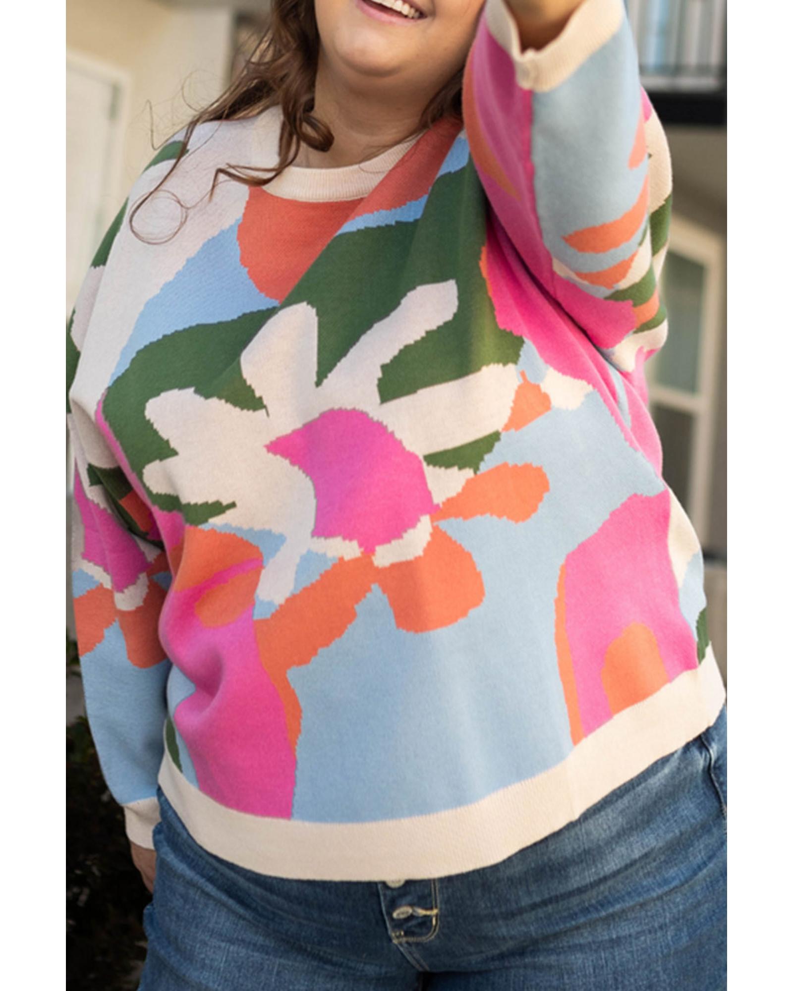 Multicolour Plus Size Floral Drop Shoulder Sweater – 1X