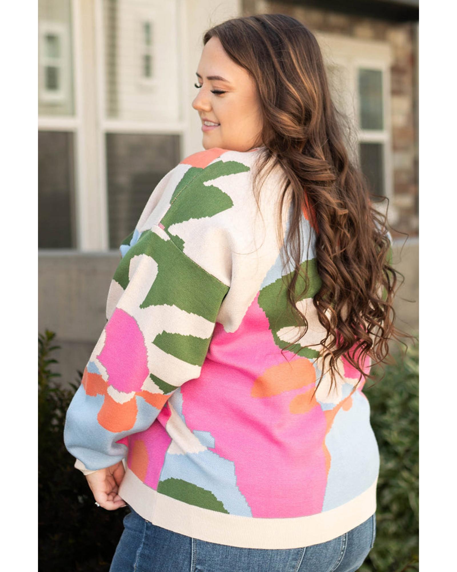 Multicolour Plus Size Floral Drop Shoulder Sweater – 2X
