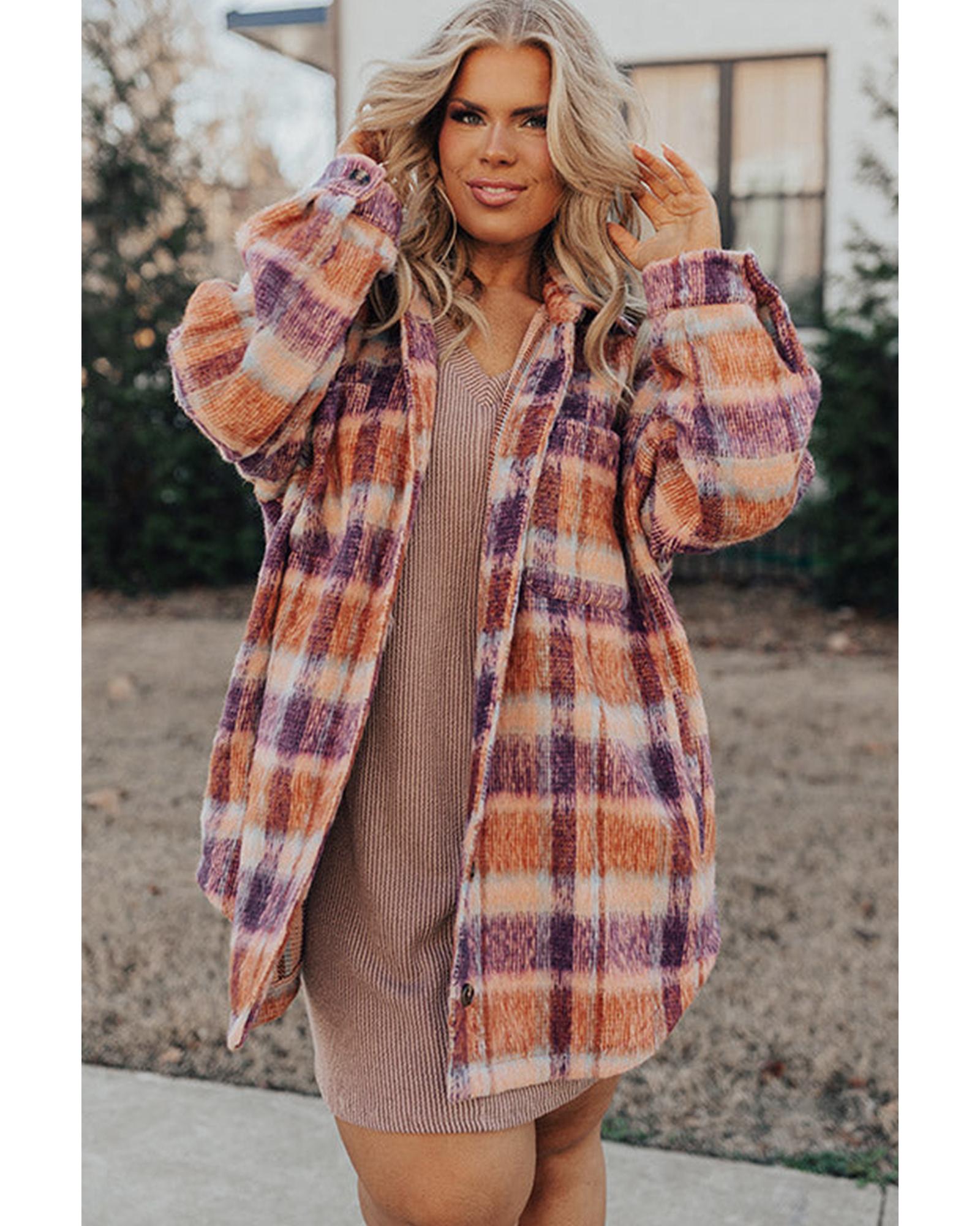 - 1 x Plus Size Plaid Print Collared Button-up Jacket