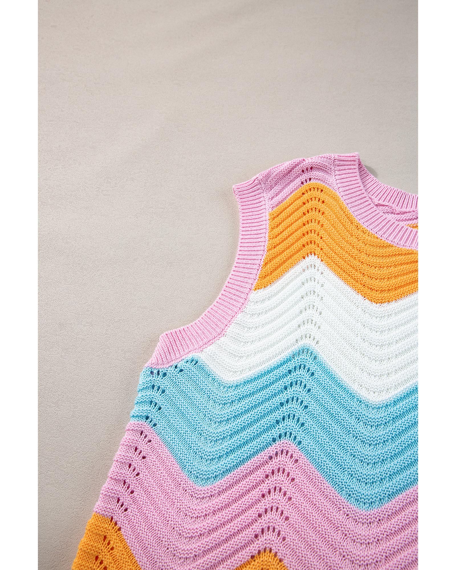 Multicolour Striped Colorblock Scalloped Hem Knitted Vest – L