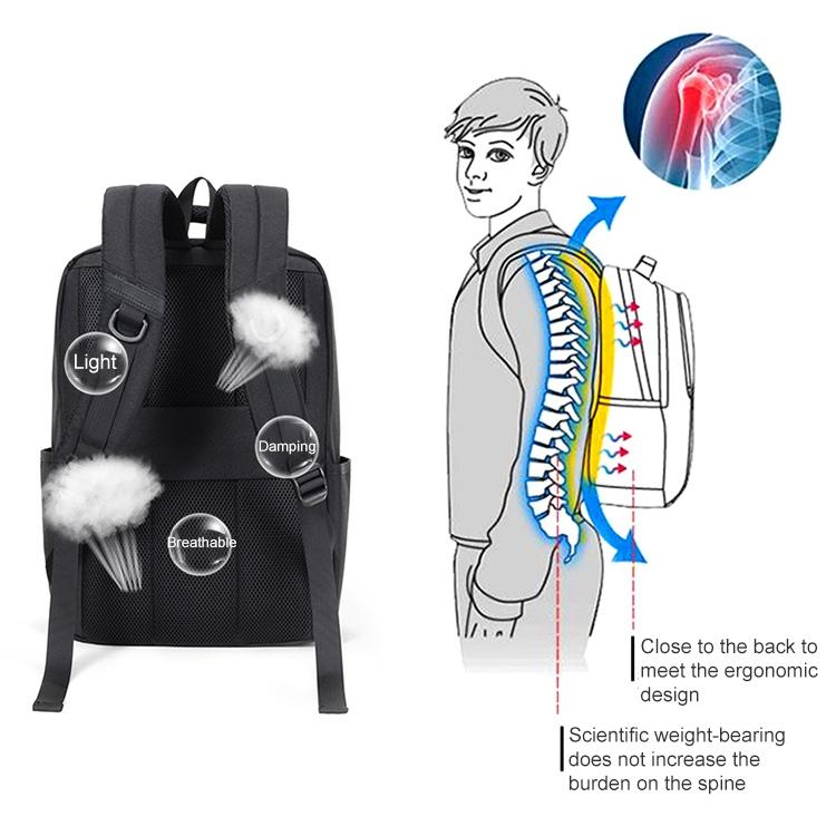 This multifunctional laptop backpack combines durability, comfort, and practicality. Made from tear-resistant and water-repellent fabric, it is designed to withstand daily wear and various weather conditions. The backpack features an ergonomic S-shaped shoulder strap and a multi-layer honeycomb mesh back cushion that provides breathability, shock absorption, and decompression, ensuring comfort during extended use. It includes a trolley strap for easy travel, multiple storage compartments with clear patterns for convenient access, and adjustable shoulder straps to fit different users. Suitable for carrying laptops, tablets, phones, cameras, books, wallets, glasses, watches, and notebooks.