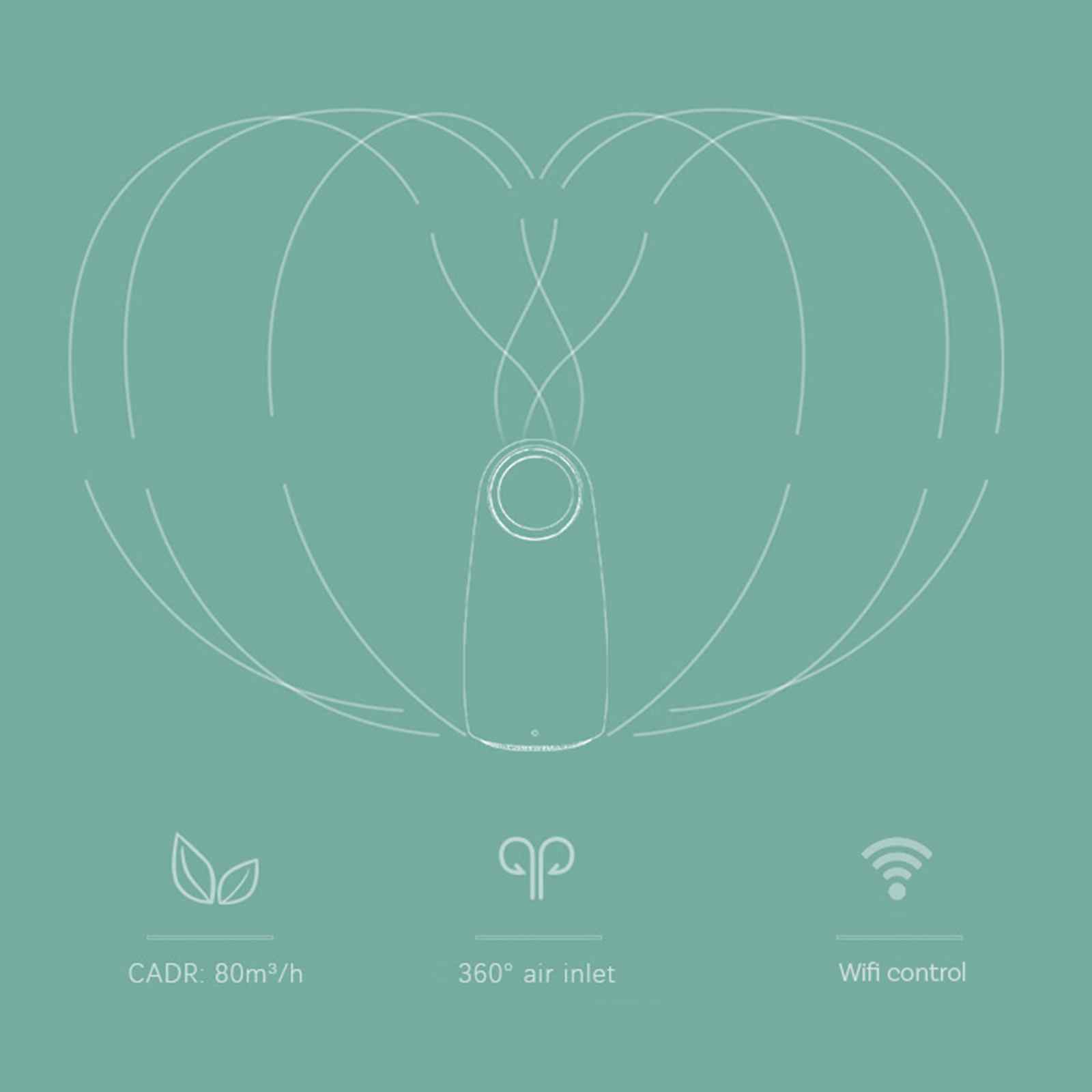 This air purifier is designed to improve indoor air quality by effectively removing airborne pollutants such as pollen, dust, mold, smoke, and chemical fumes. Its compact and modern design allows it to blend seamlessly into any room decor. Equipped with Wi-Fi control, users can operate the device remotely via a smartphone app, making it convenient to manage air purification settings from anywhere.