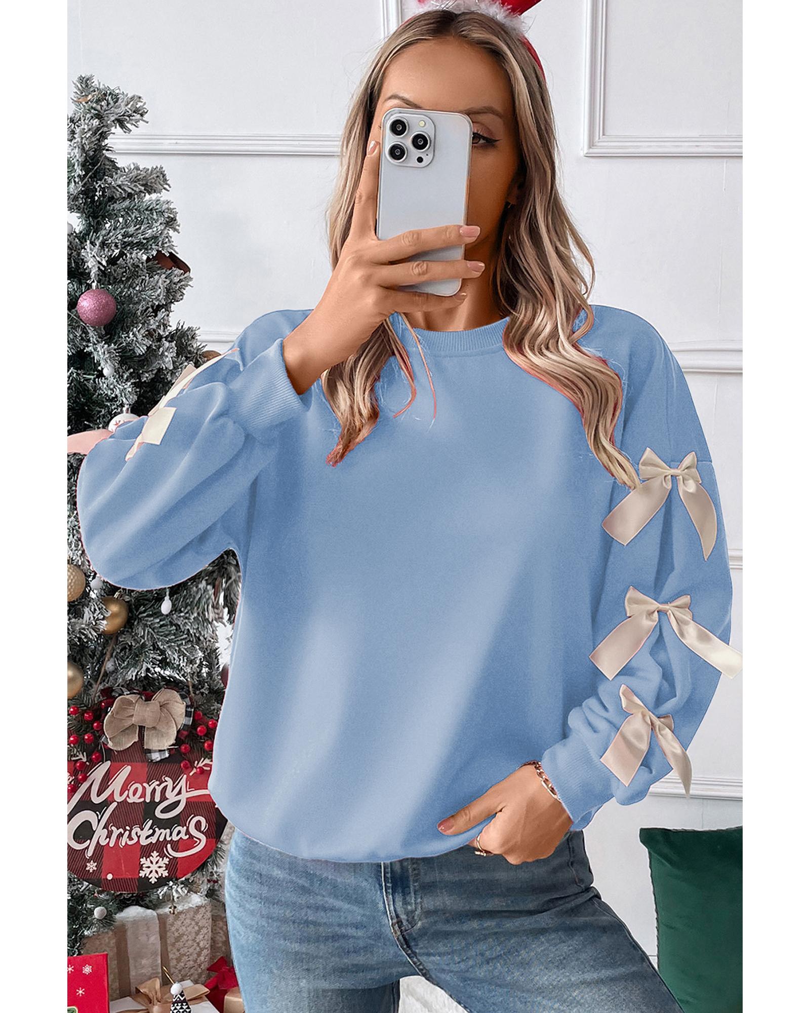 Myosotis Contrast Bow Decor Dropped Sleeve Crewneck Sweatshirt – XL