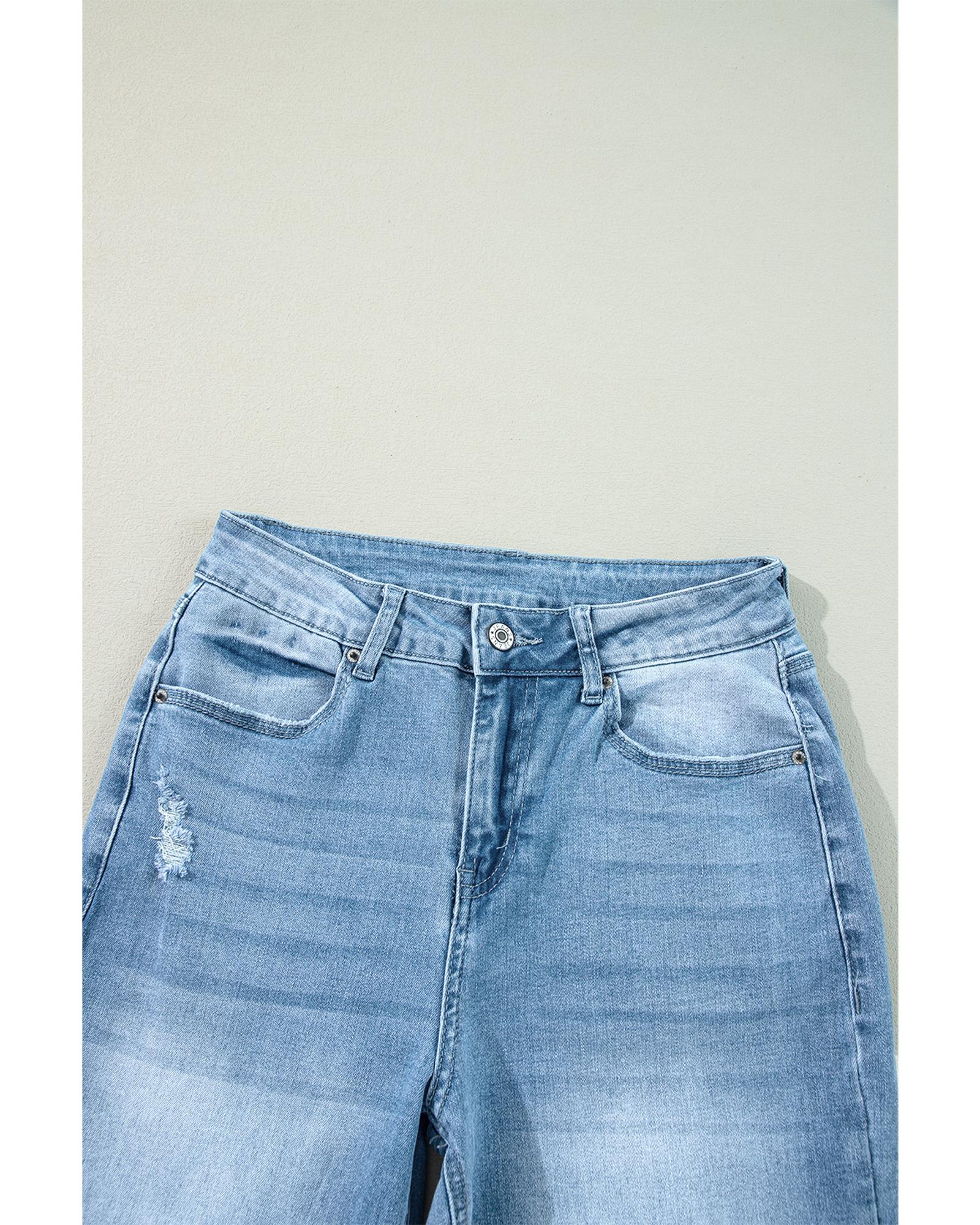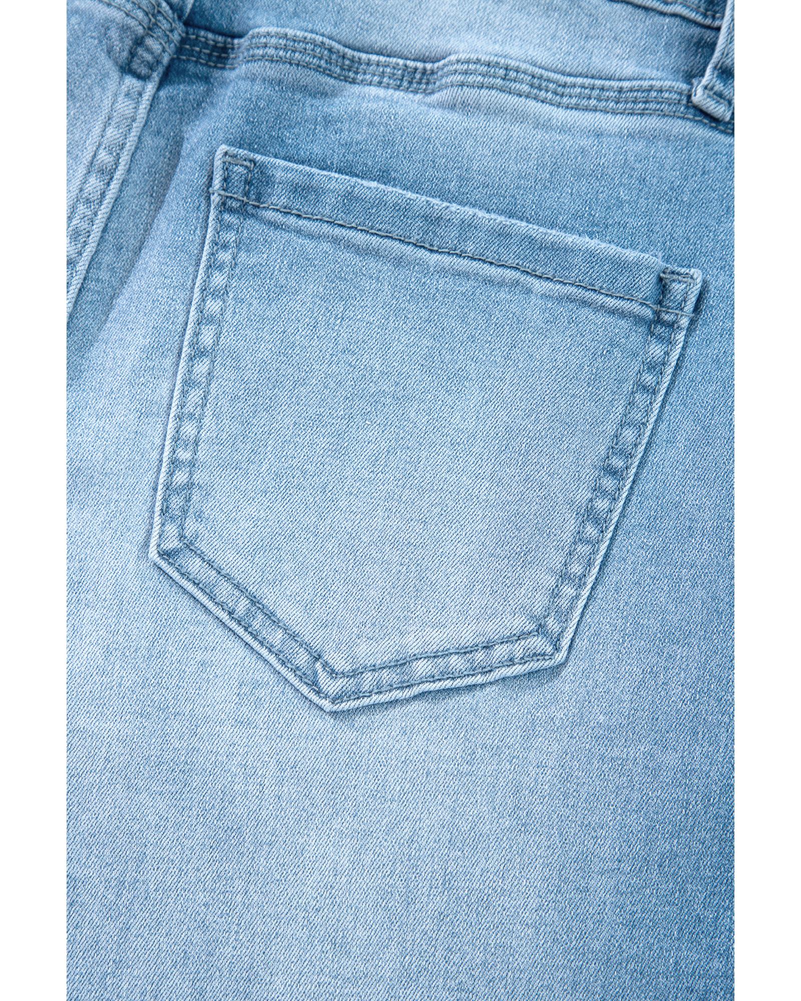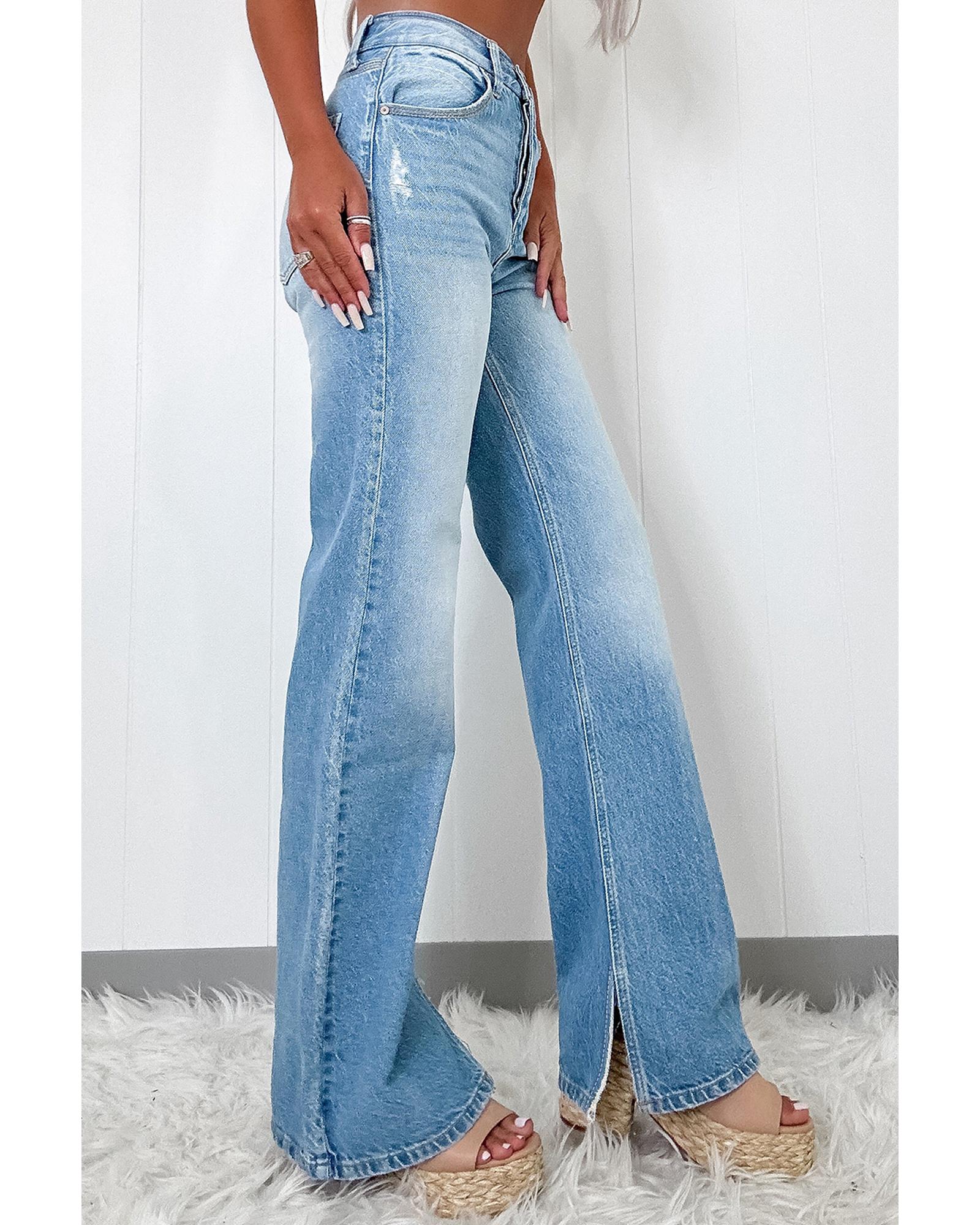 These high-rise shift slit leg straight jeans are designed to offer a trendy and flattering silhouette with a vintage-inspired light wash. They provide a comfortable fit with high elasticity, making them suitable for various casual and stylish outfits.