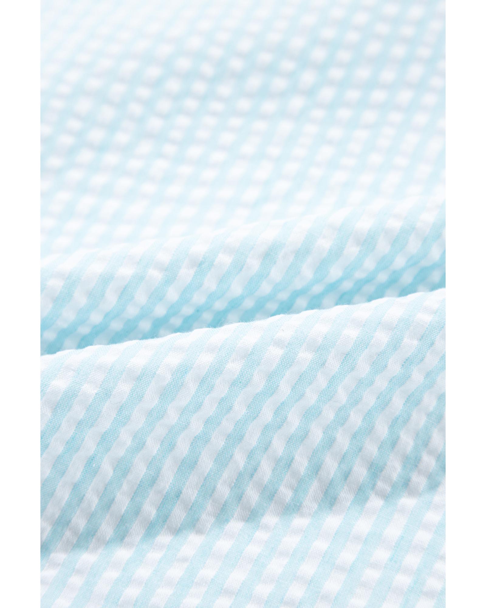 Myosotis Seersucker Ruffled Puff Sleeve Stand Neck Mini Dress – M