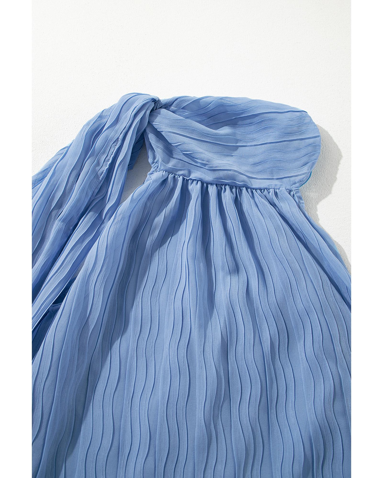 Myosotis Textured Pleated Tied Mock Neck Flowy Tank Top – L