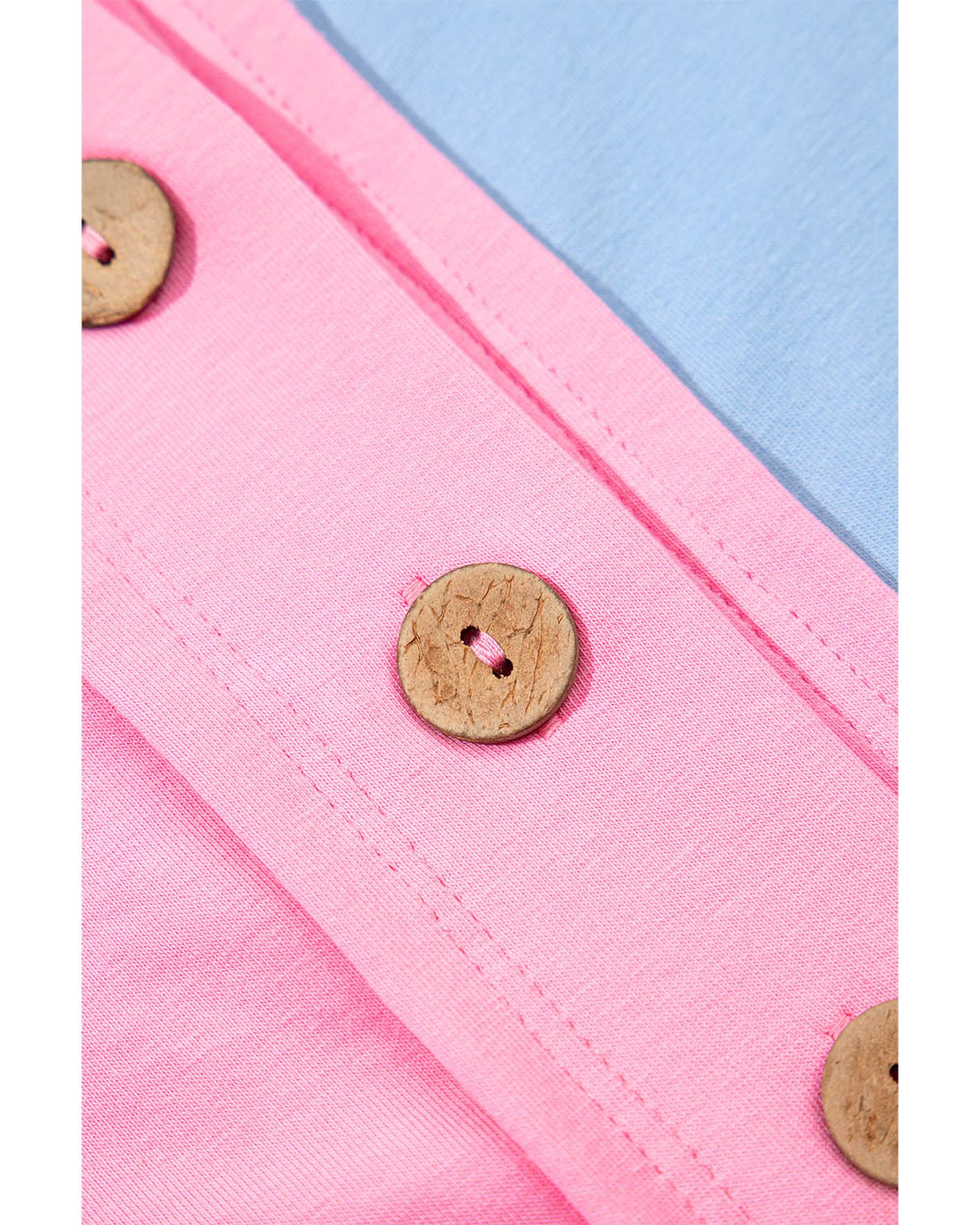This collared T-shirt features a stylish two-tone color scheme and button detailing down the front. Its versatile design makes it suitable for both casual and semi-formal occasions, offering a polished and structured appearance. The slim fit cut provides a flattering silhouette, making it a fashionable choice for various settings.