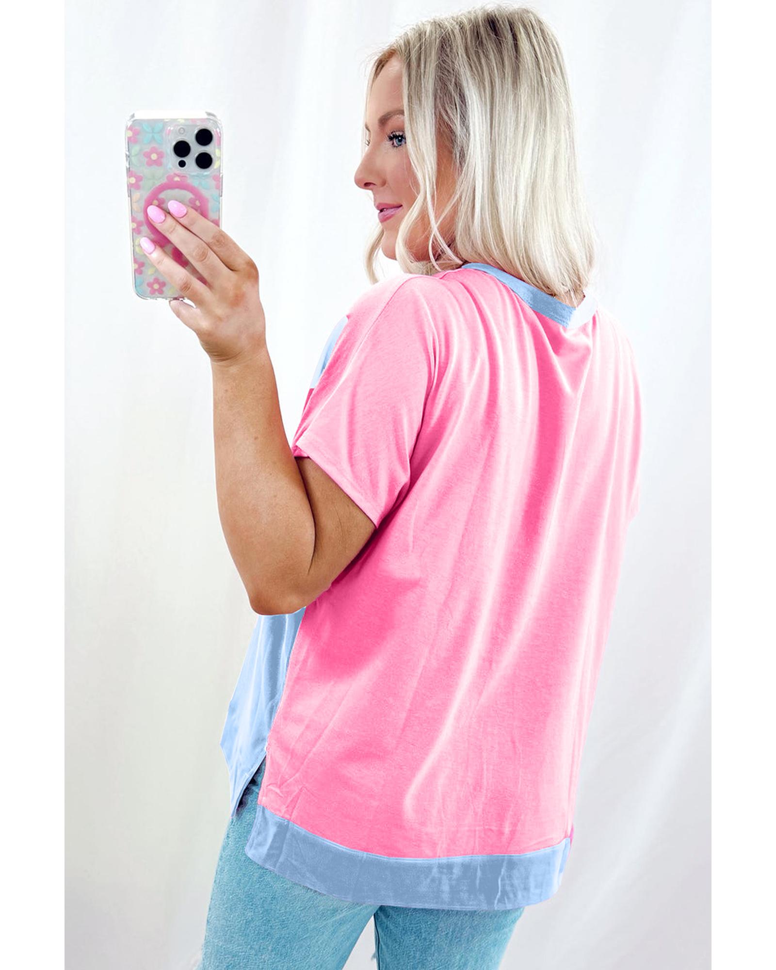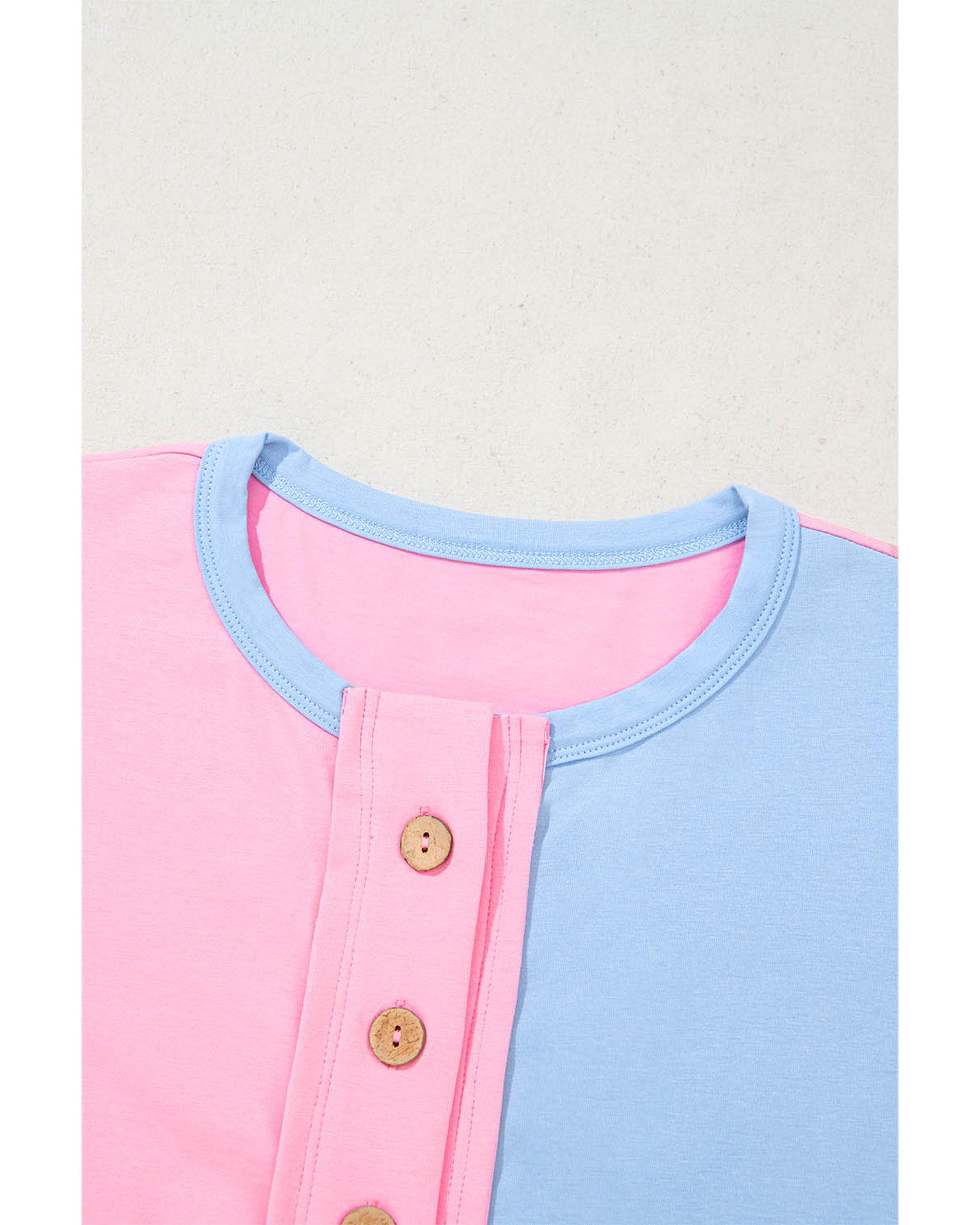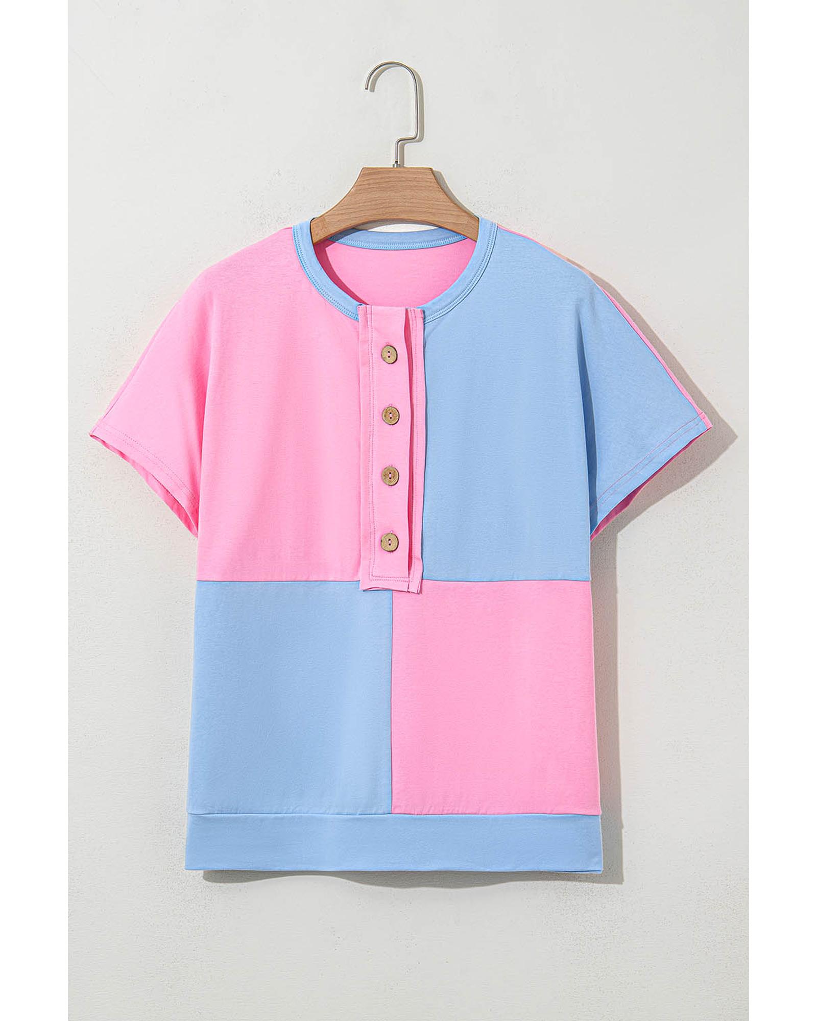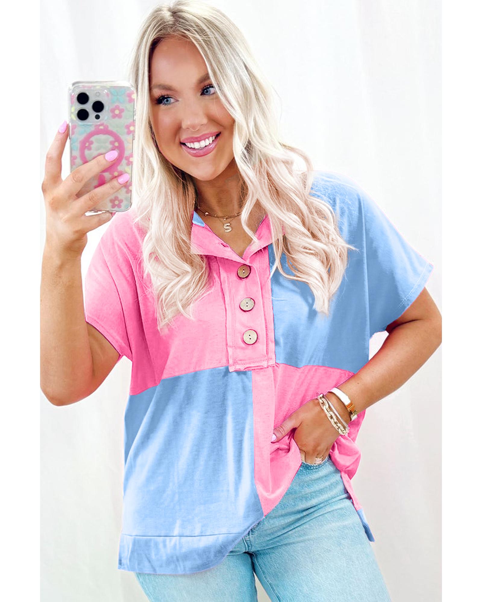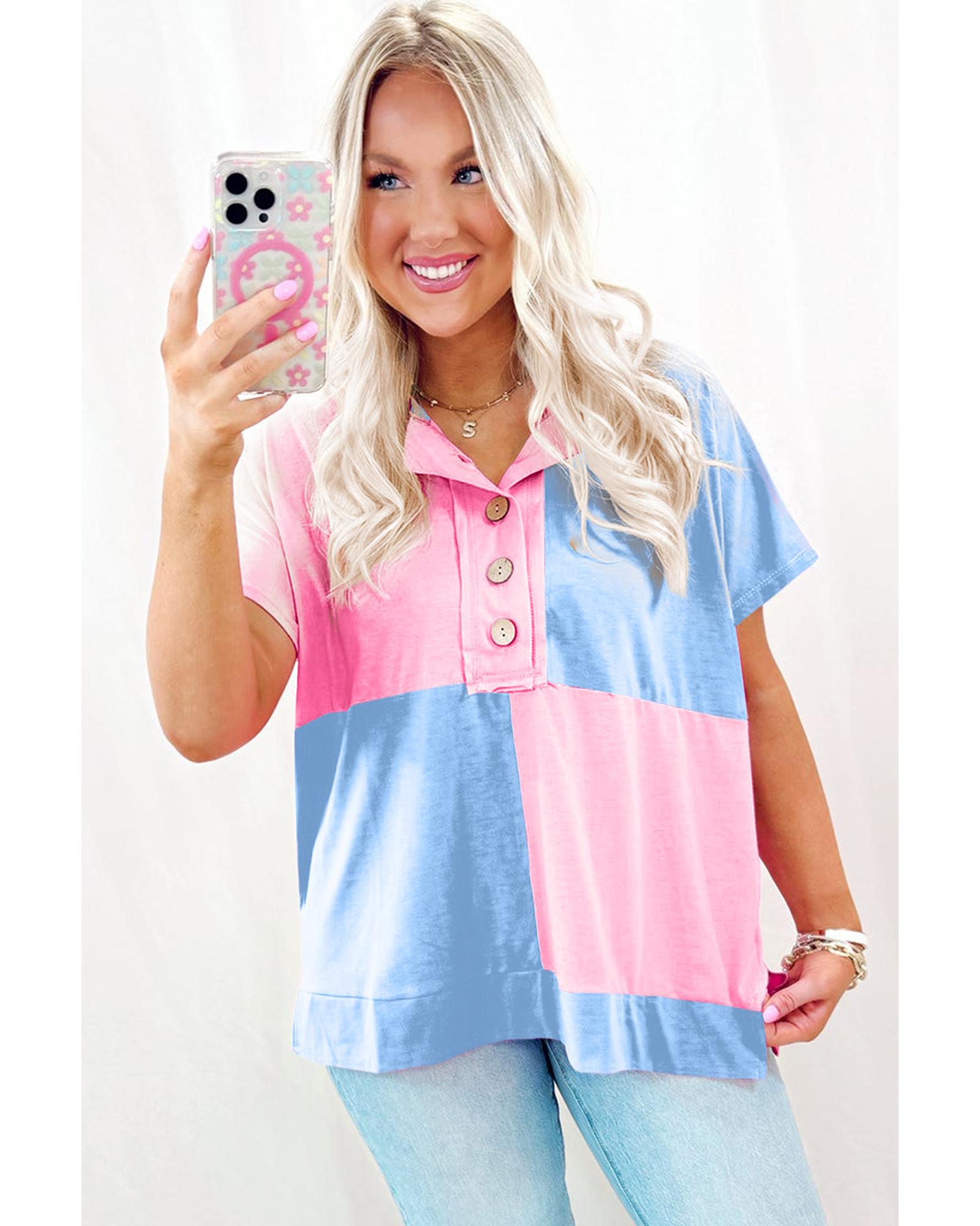 This stylish collared T-shirt features a two-tone color scheme and button detailing down the front, offering a versatile look suitable for both casual and semi-formal occasions. Its slim fit design provides a flattering silhouette, making it a great addition to any wardrobe.