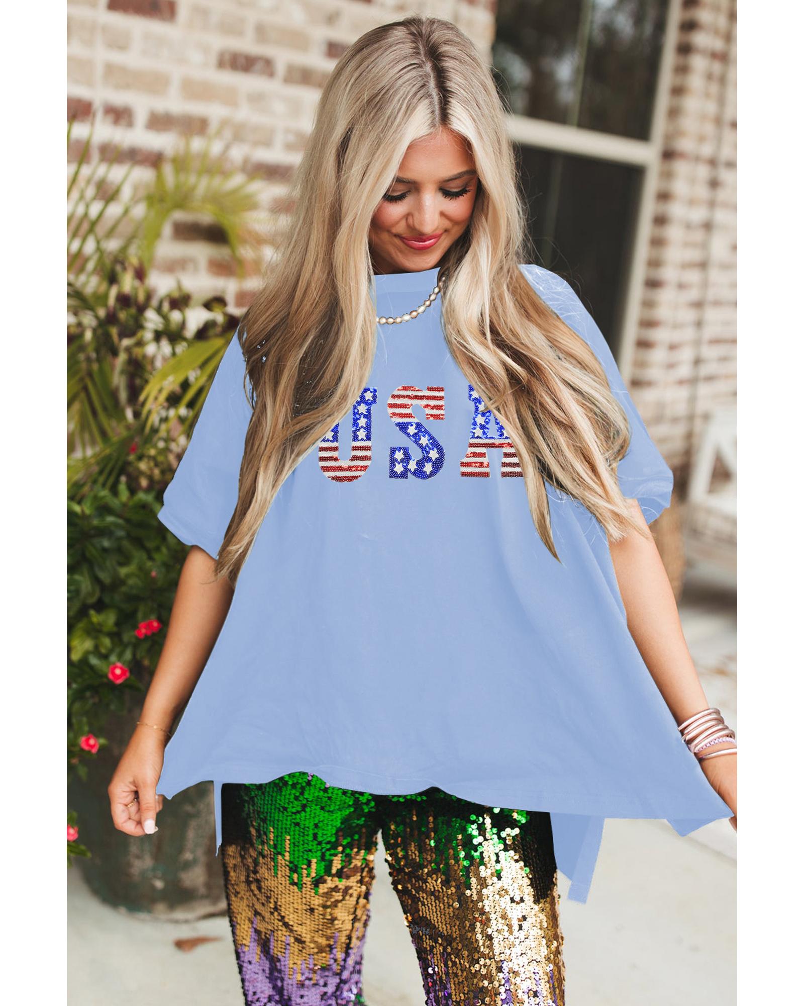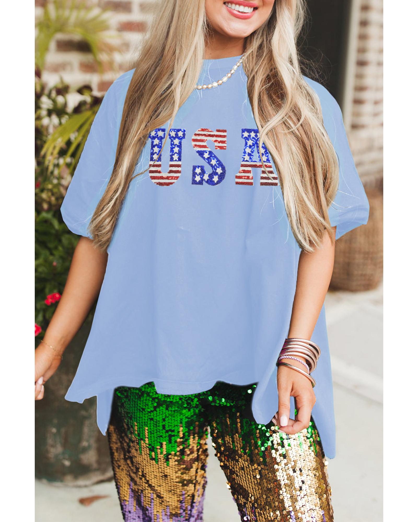 This crewneck T-shirt features a bold patriotic patch design, combining comfort and style for everyday wear. Its relaxed fit and drop shoulder design make it suitable for casual occasions, providing both comfort and a laid-back look.