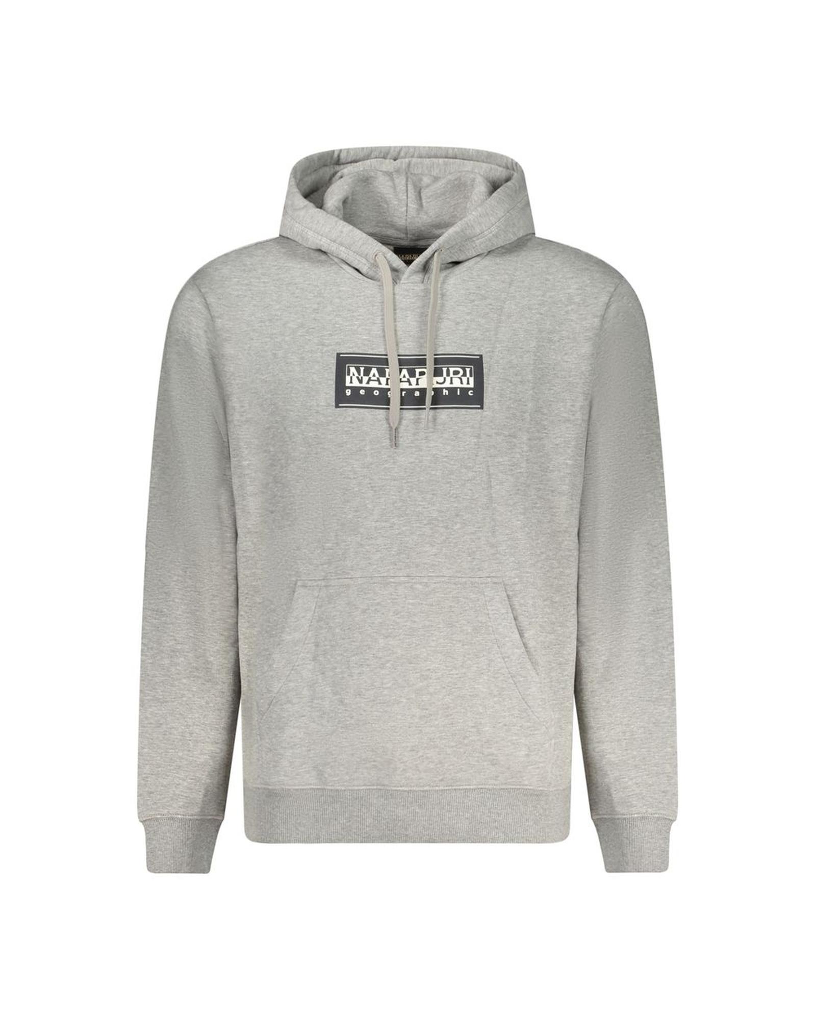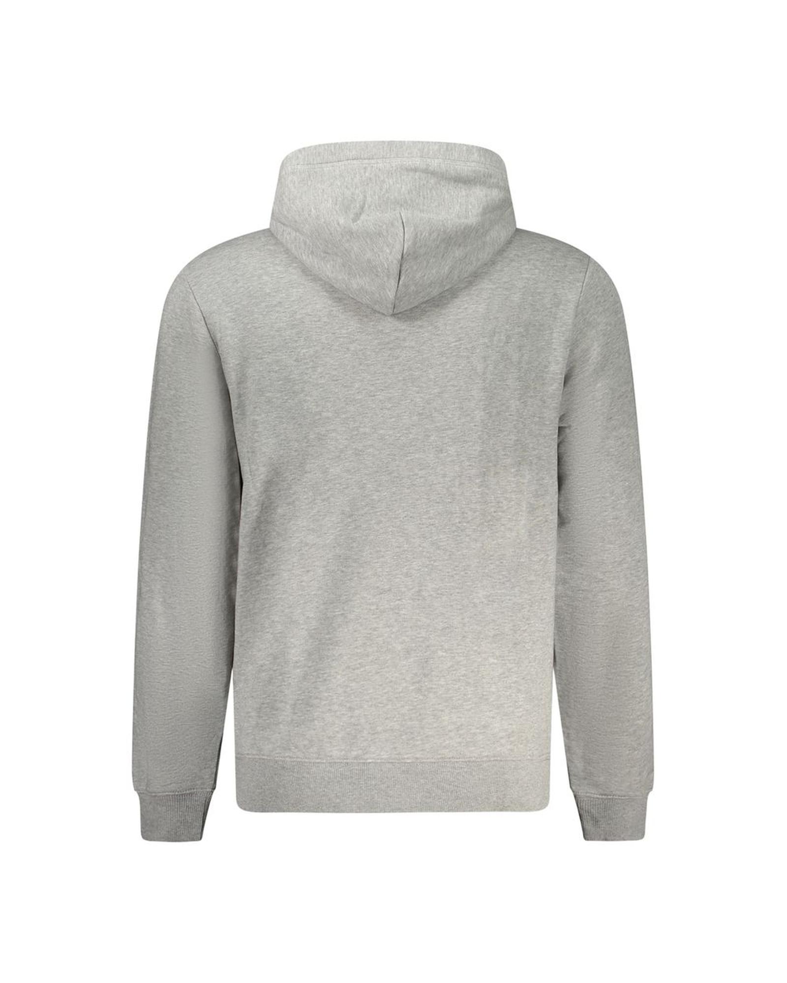 This men’s gray cotton sweater offers a comfortable and relaxed fit, making it suitable for casual wear. It features a long sleeve hoodie design with a central pocket and a printed logo, combining style and practicality.