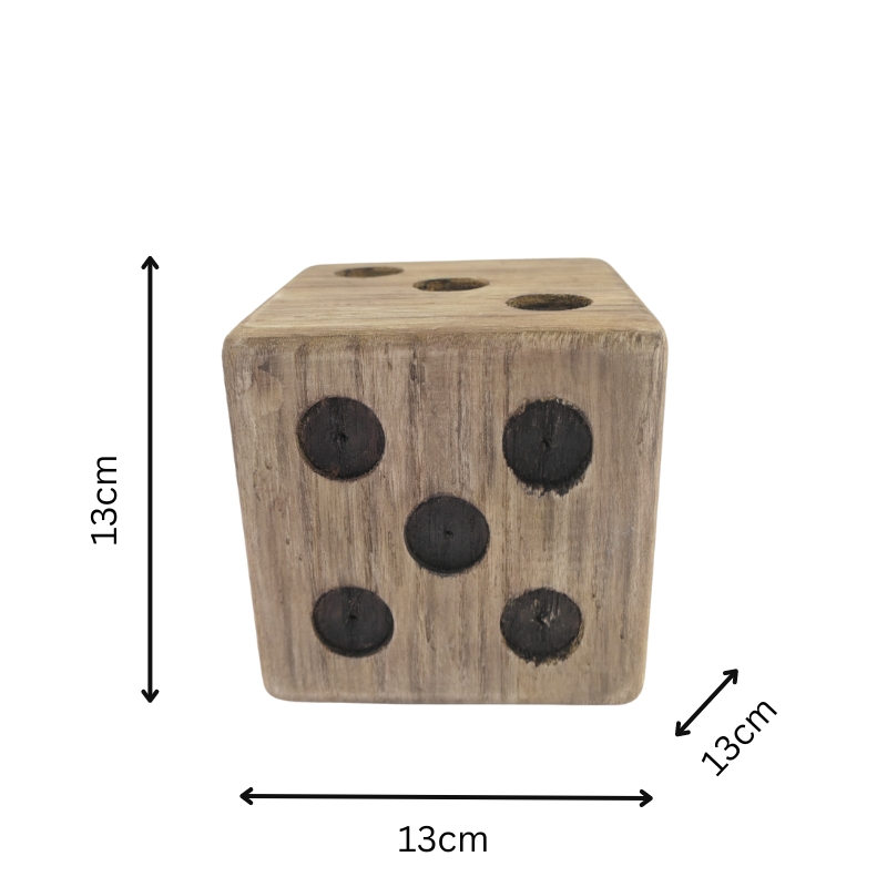 This finely detailed square dice ornament measures 13 centimeters on each side and serves as an attractive decorative feature for any home. Crafted from lightweight paulownia wood, it combines natural aesthetics with a modern design.