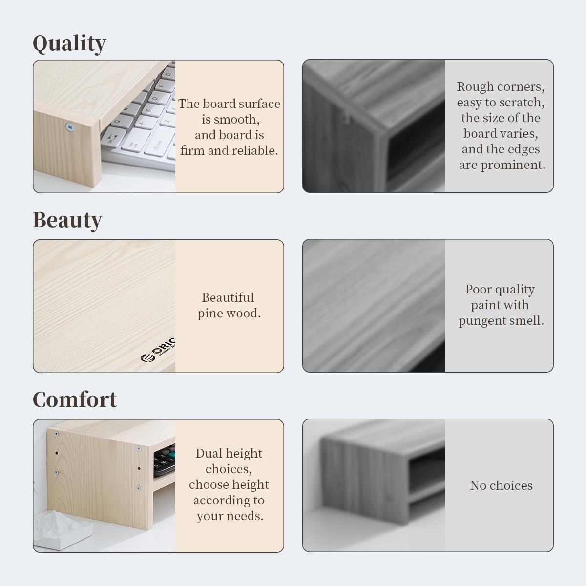 This natural wood monitor stand features a compact design suitable for various workspace setups. Crafted from durable pine triamine material, it offers a sturdy and reliable platform for your monitor, supporting up to 100kg of weight. Its lightweight construction makes it easy to move and assemble, providing a practical solution for organizing your desk efficiently.