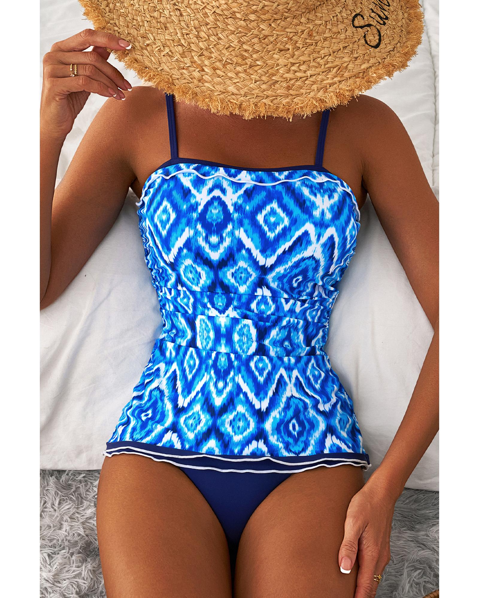 - Abstract print tankini with frilled trim