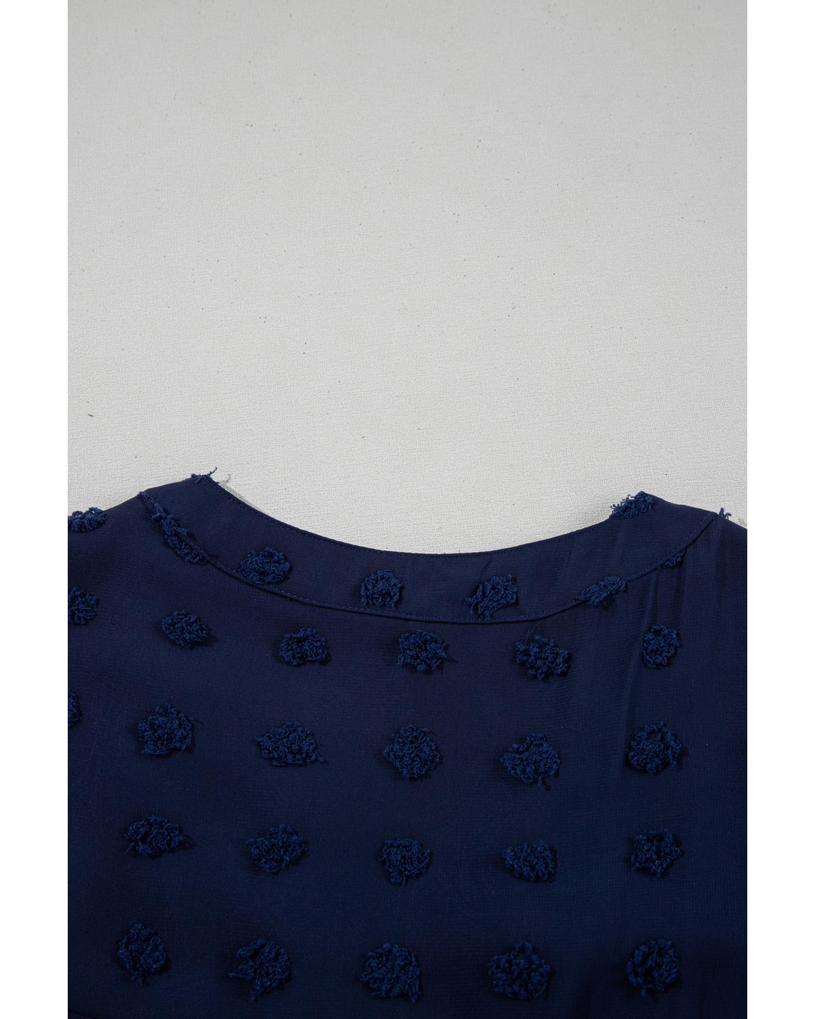 This navy blue dress features a charming dotty textured pattern with stylish notched neckline and ruffled details, creating a feminine and playful look. Designed in plus size, it offers a flattering fit suitable for various body types. Ideal for weddings, parties, or special events, this dress combines elegance with comfort.