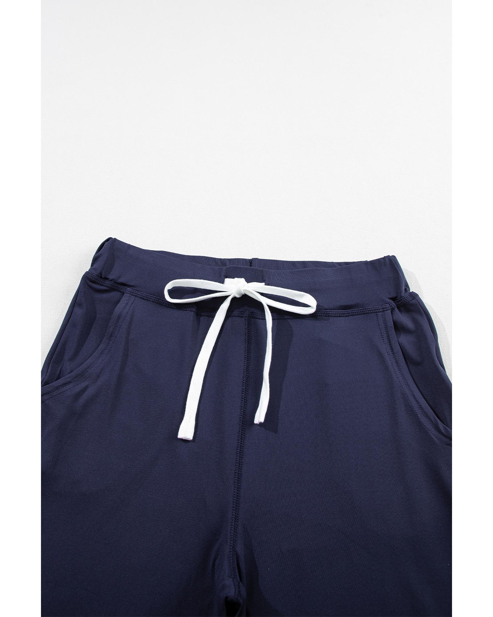 Navy Blue Drawstring Waist Pocketed Joggers – XL