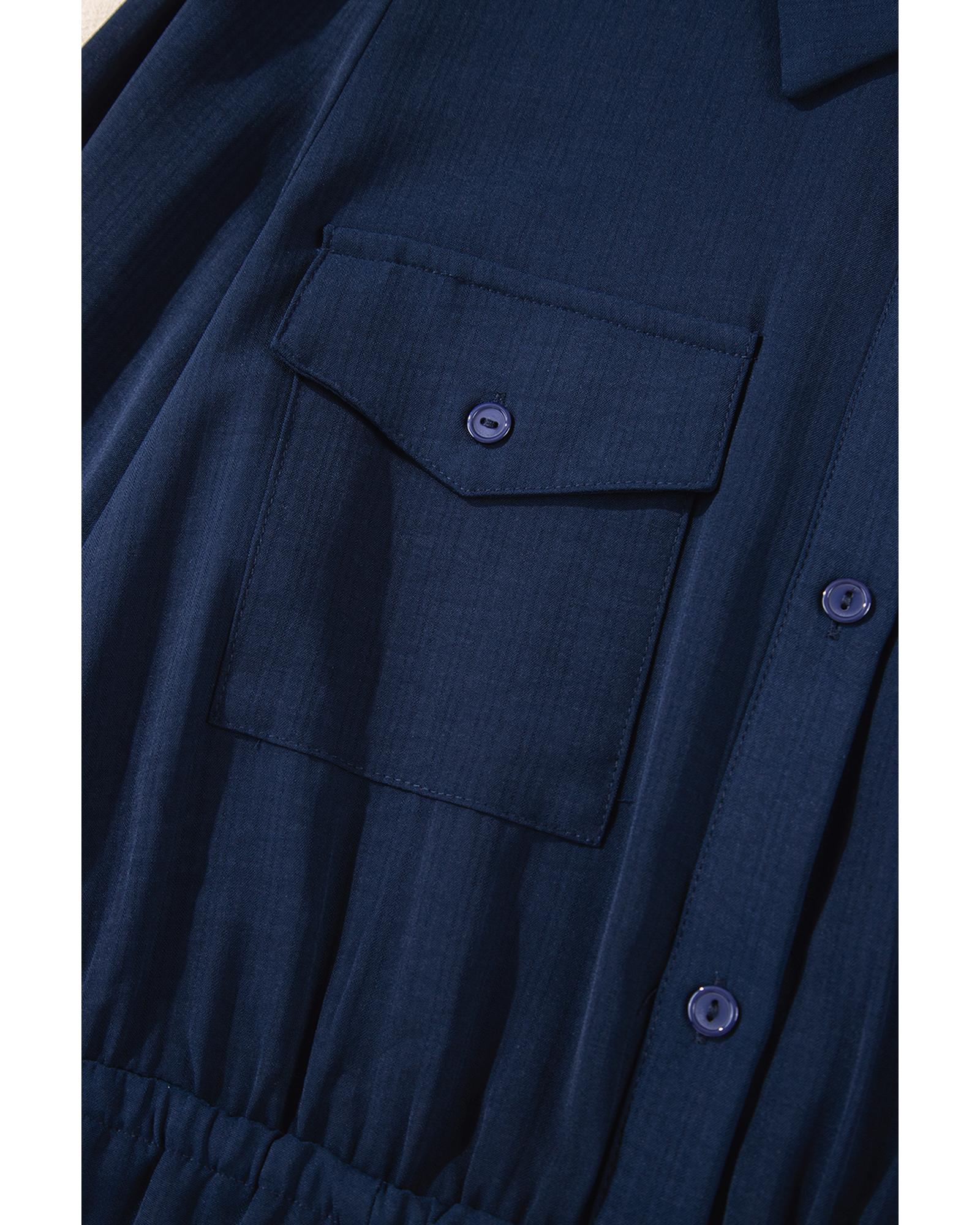 Navy Blue Solid Chest Pockets Tunic Shirt Mini Dress – L