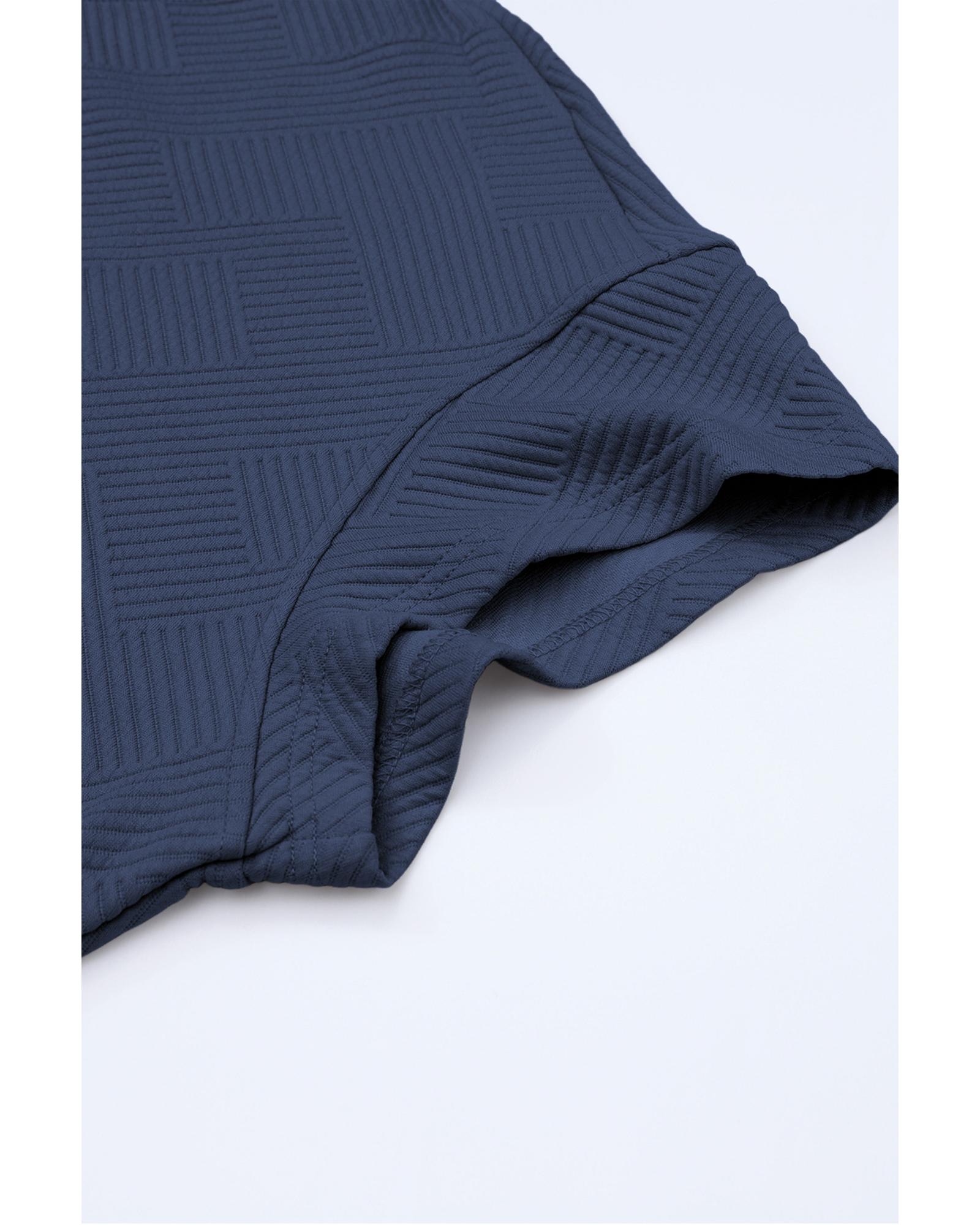 This navy blue textured set includes a loose fit T-shirt and drawstring pants, designed for a comfortable and stylish casual look. The textured fabric adds a fashionable touch, while the drawstring waist allows for a customizable fit. Available in various sizes, this set is ideal for relaxed everyday wear.
