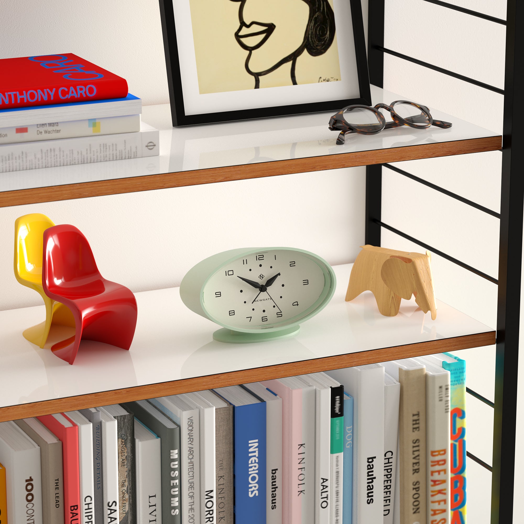 This alarm clock features a modern, oval-shaped design with a retro aesthetic, crafted from acrylic with a matte finish. Its clean Arabic dial and unique shape make it a stylish addition to any space. The clock operates silently with a sweep movement, ensuring no ticking sounds disturb your environment.