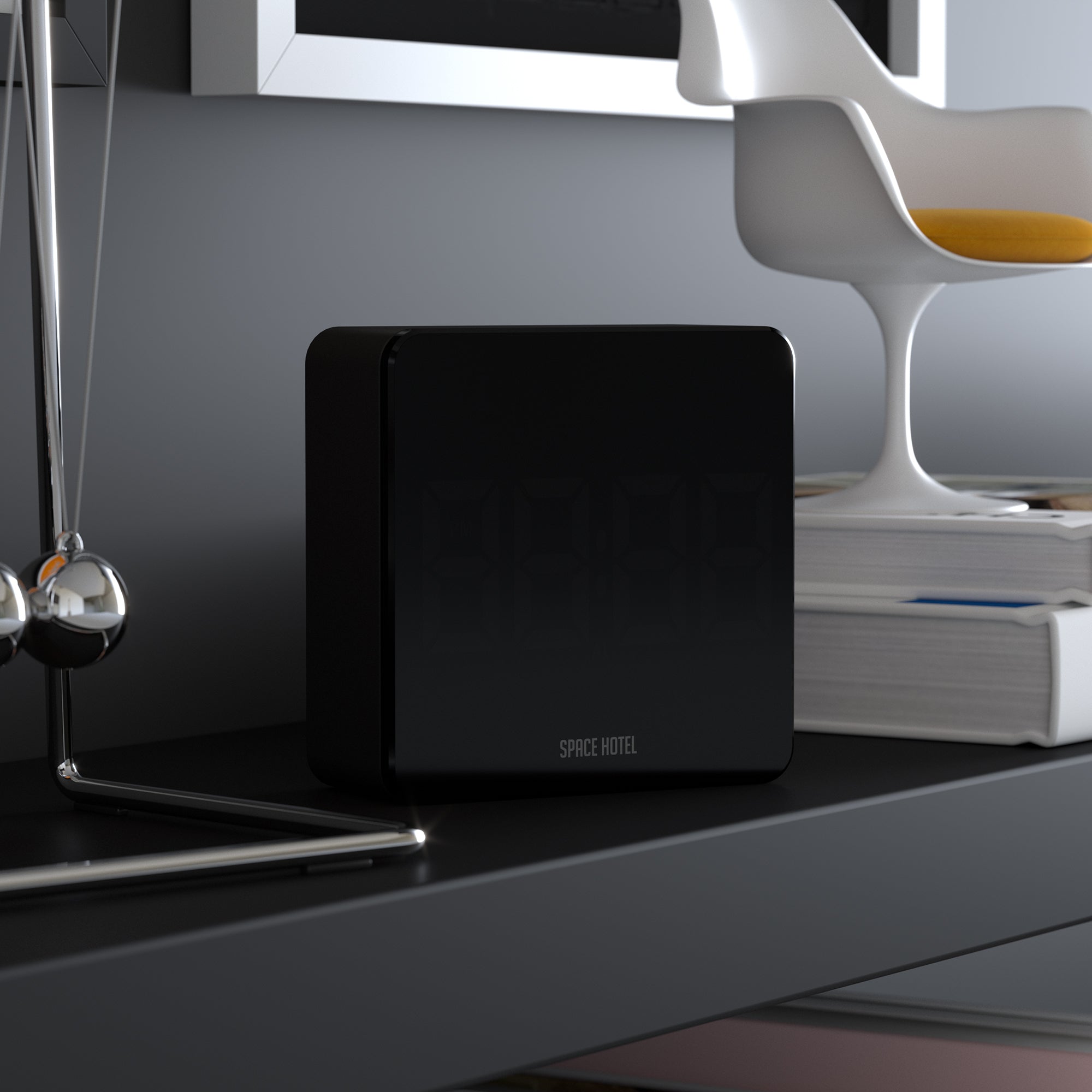 Newgate Space Hotel Orbatron Alarm Clock Black Case – Black Lens – Orange Led