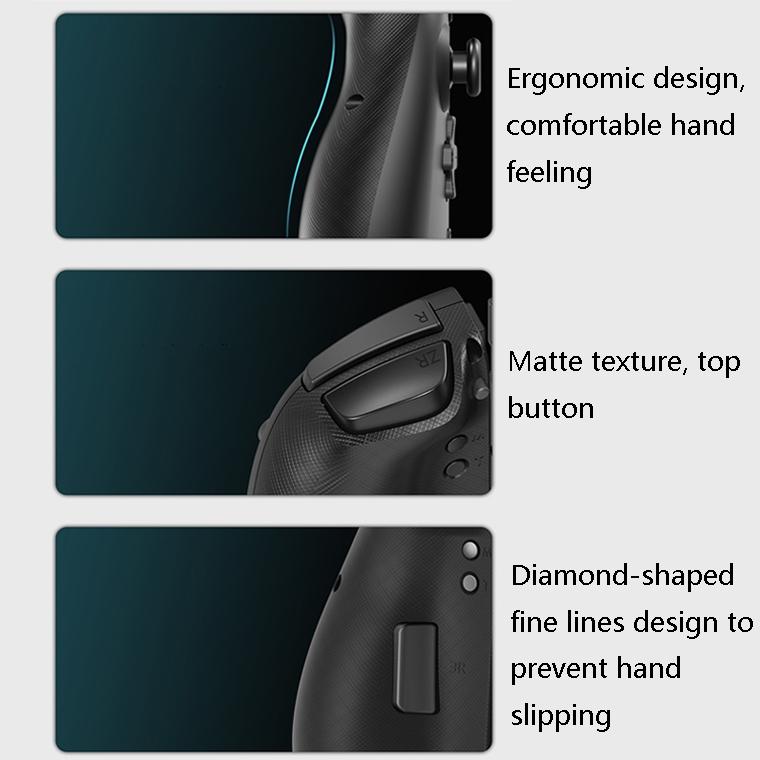 This wireless gamepad features a unique tooth design, providing an ergonomic and comfortable gaming experience. It is equipped with a frosted texture and diamond-shaped fine lines to ensure a non-slip grip. The gamepad offers intelligent lighting with adjustable settings, six-axis somatosensory, and dual motor vibration to enhance gameplay. It includes a top button for easy access and a built-in 500 mAh lithium battery for extended use.