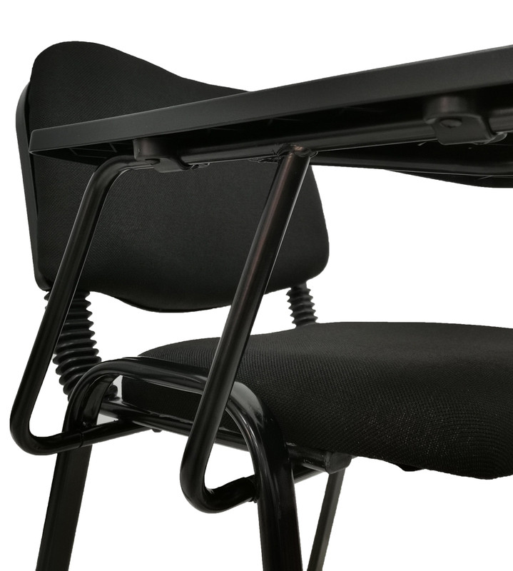 This lecture chair with a table top is designed for classroom, training, and conference use. It features a sturdy construction with a comfortable upholstered seat and a removable table top, making it versatile and space-saving. The chair is suitable for various professional environments and offers durability for frequent use.