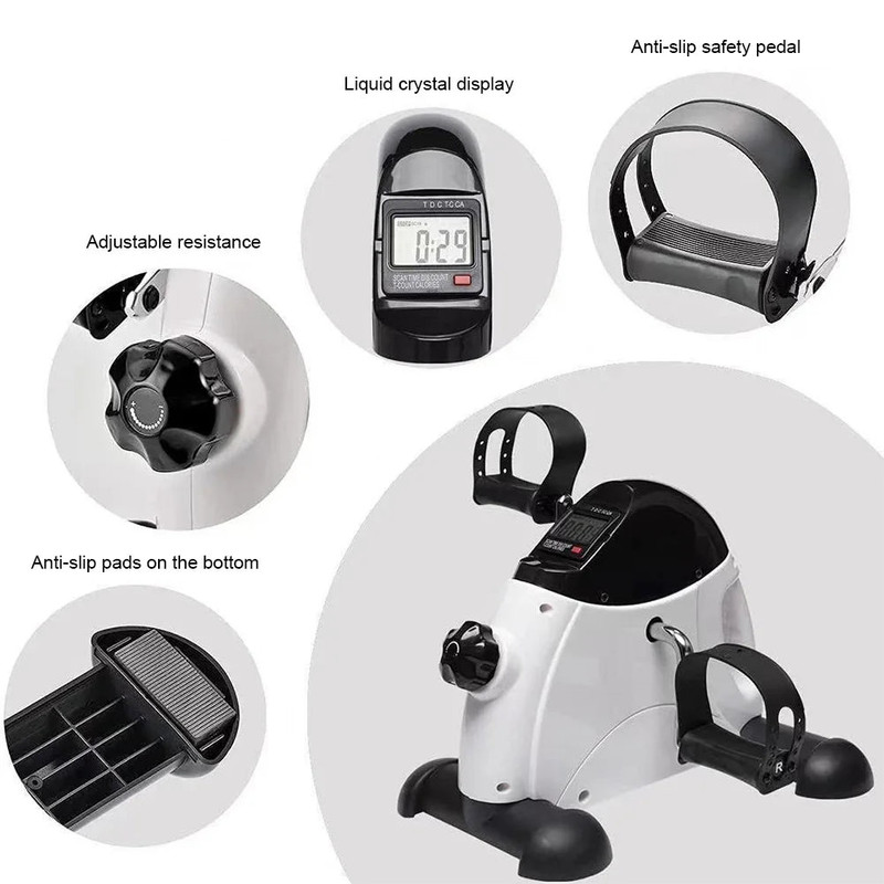 This compact exercise bike is designed for indoor use, providing an effective way to perform arm and leg workouts. It features adjustable resistance, a multi-function LED display for tracking exercise data, and a non-slip base to ensure safety and stability during workouts.