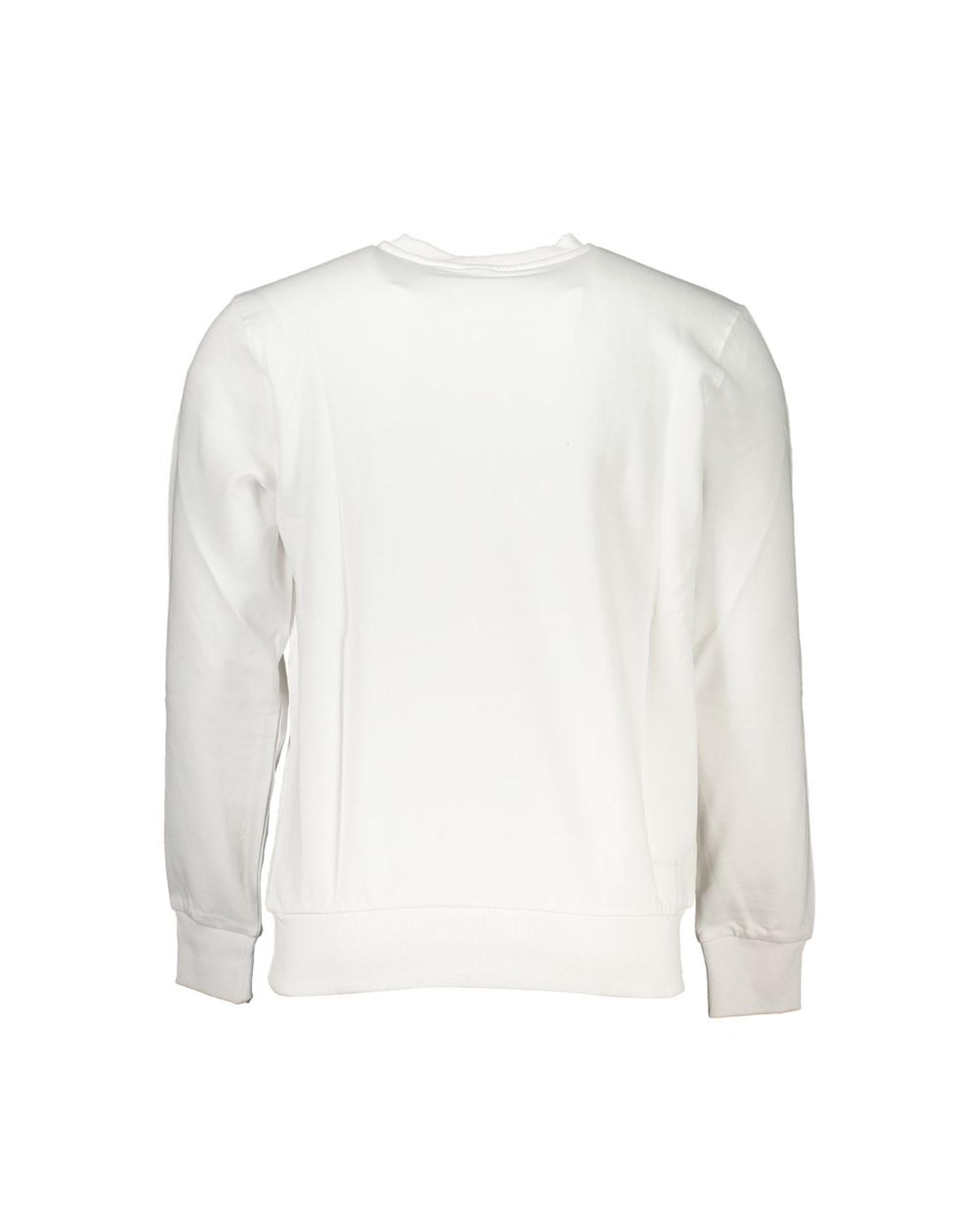This men’s long-sleeve shirt is made from soft white cotton fabric, offering comfort and style. It features a classic crew neck design with a stylish print and logo accent, making it suitable for casual wear.