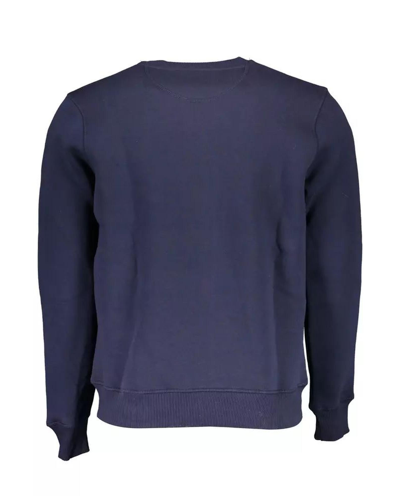 This men’s blue cotton sweater offers a comfortable and stylish option for everyday wear. Designed with long sleeves and a round neck, it combines classic style with modern details, making it suitable for various casual occasions.