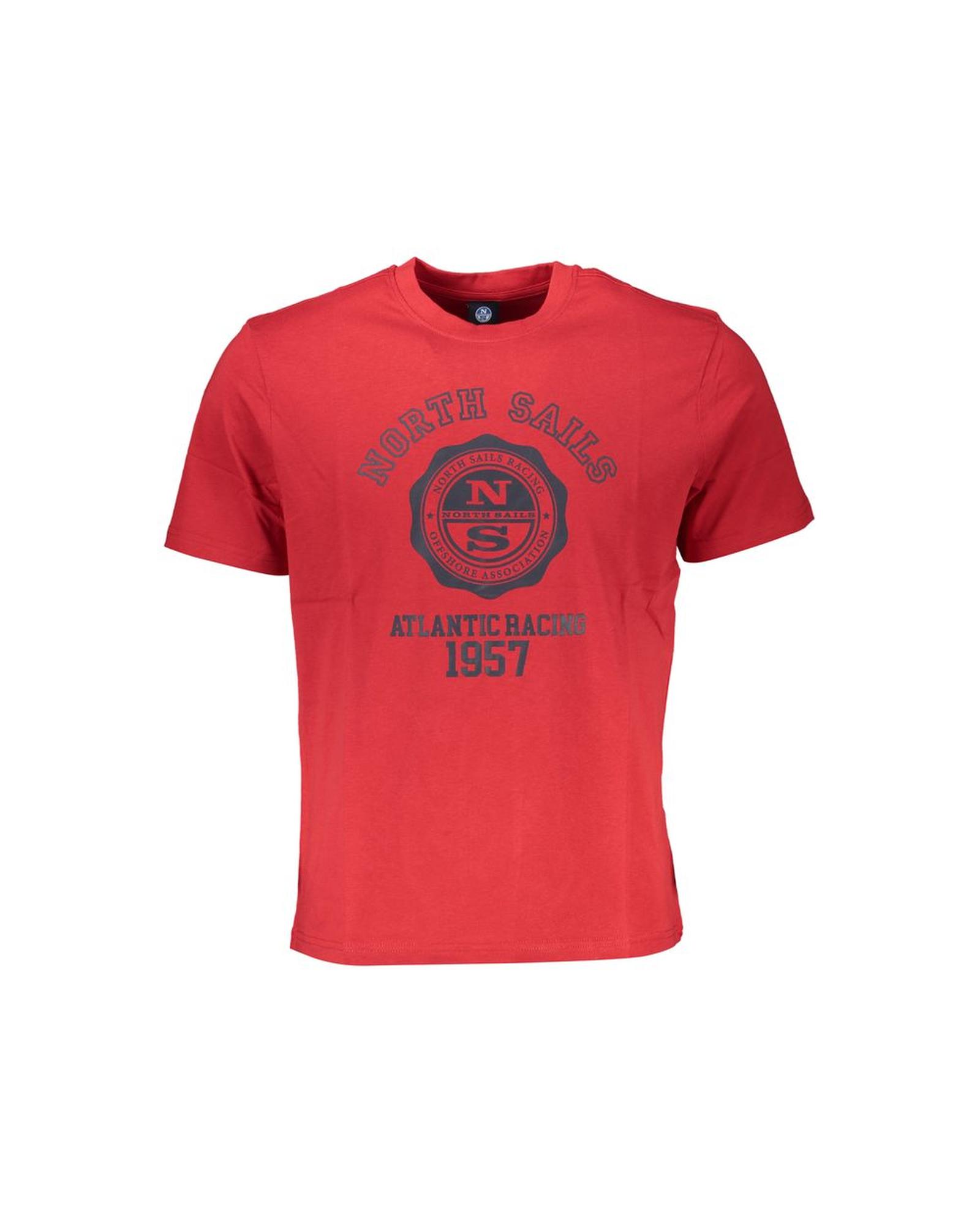 - Red cotton T-shirt with print and logo