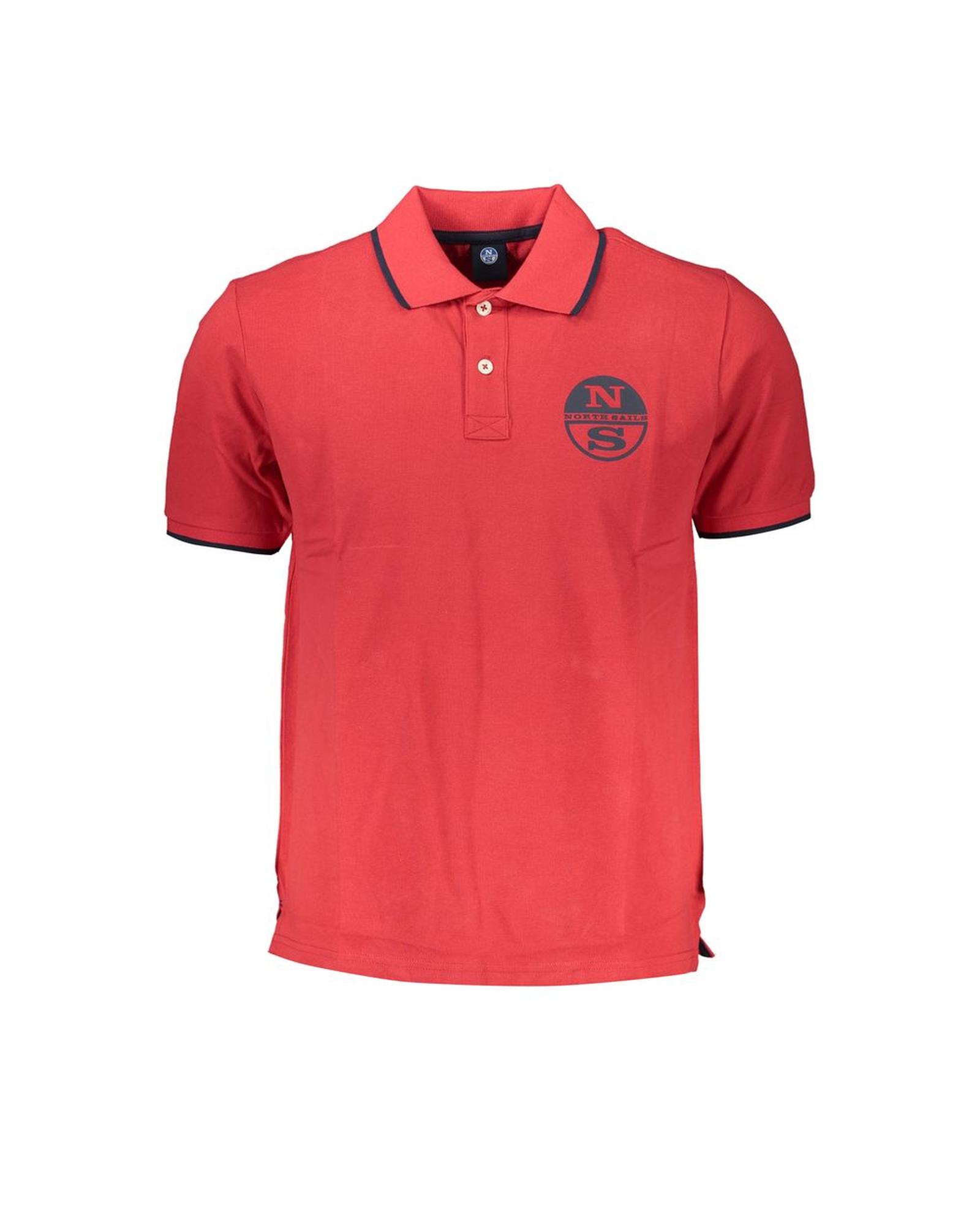 - Red cotton polo shirt with contrast details and print
