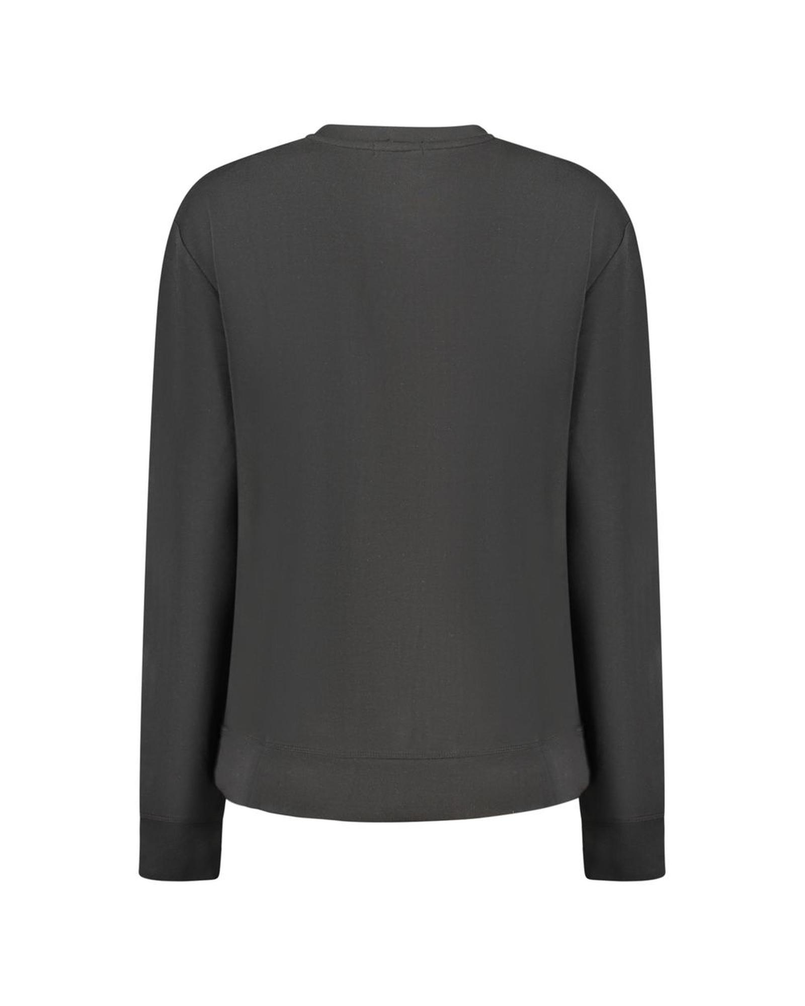 This women’s sweater features a sleek black design crafted from a high-quality blend of polyester, elastane, and modal. It offers a comfortable, snug fit that remains breathable, making it suitable for various casual occasions. The sweater is accented with embossed logo and bold relief print details, adding a stylish touch to its classic look.