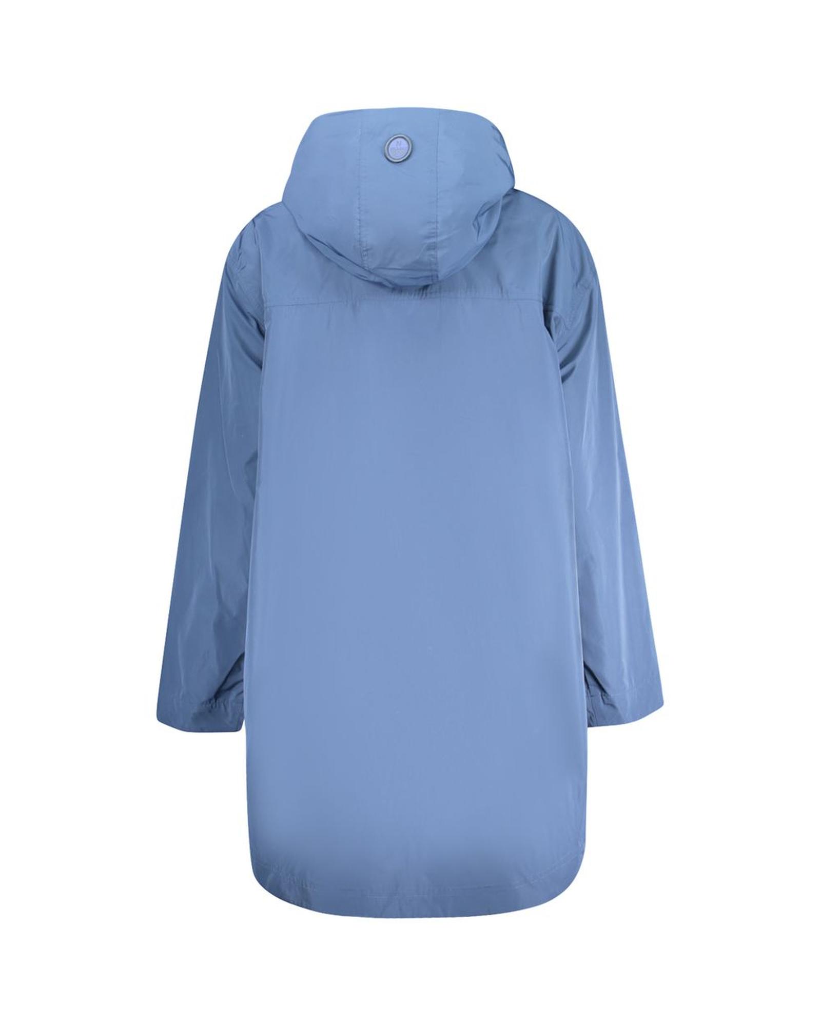 This women’s blue polyester jacket and coat offers a practical and stylish outerwear option. Designed with comfort and functionality in mind, it features a long sleeve design, a practical hood, and a fashionable print with a logo. The jacket includes two pockets and secure closure with buttons and a zipper, making it suitable for various weather conditions.