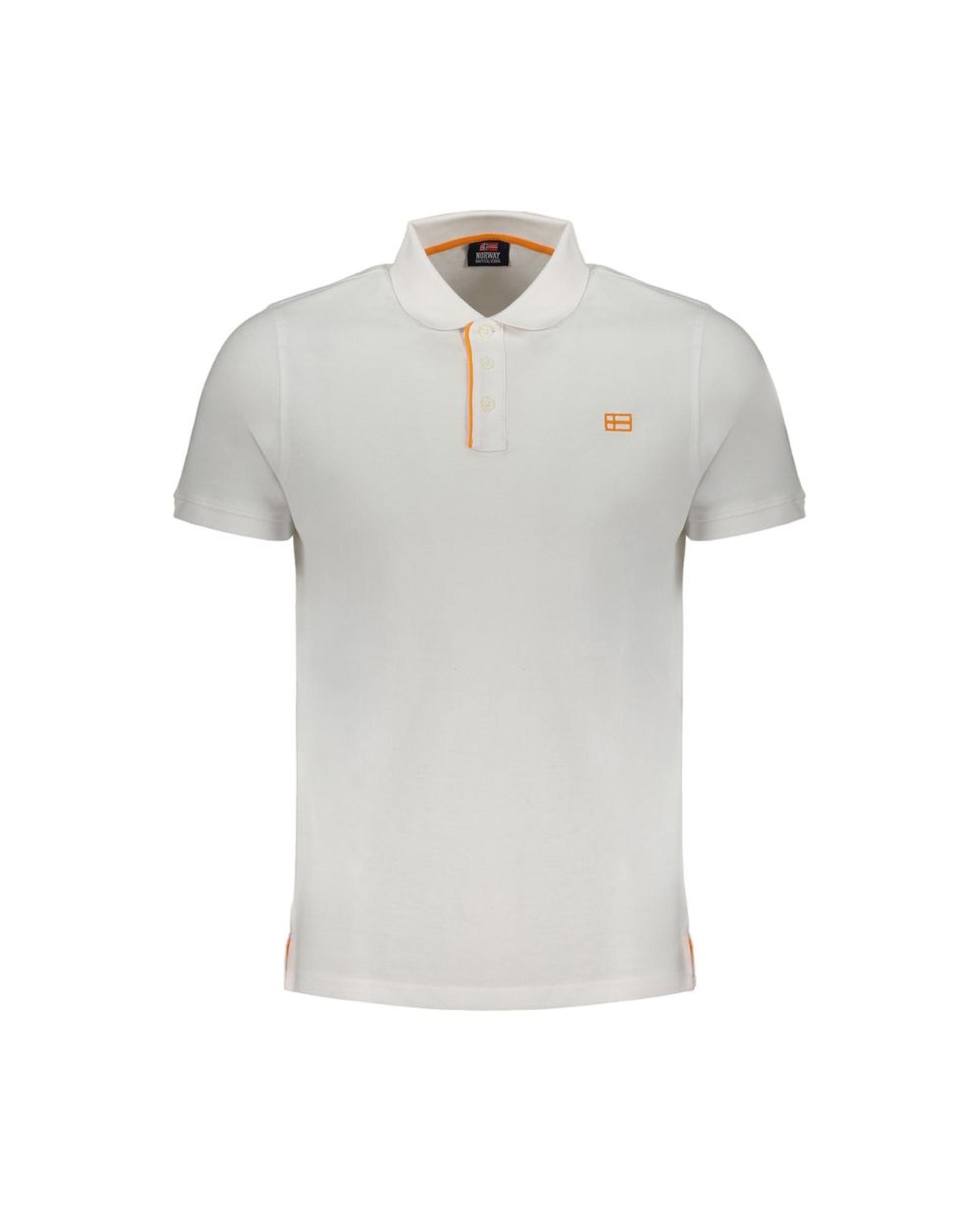 This men’s short-sleeved polo shirt features a classic design with contrast details and a logo, making it suitable for casual and semi-formal occasions. Crafted from 100% cotton, it offers comfort and breathability. The shirt includes three buttons at the collar and is designed specifically for men.
