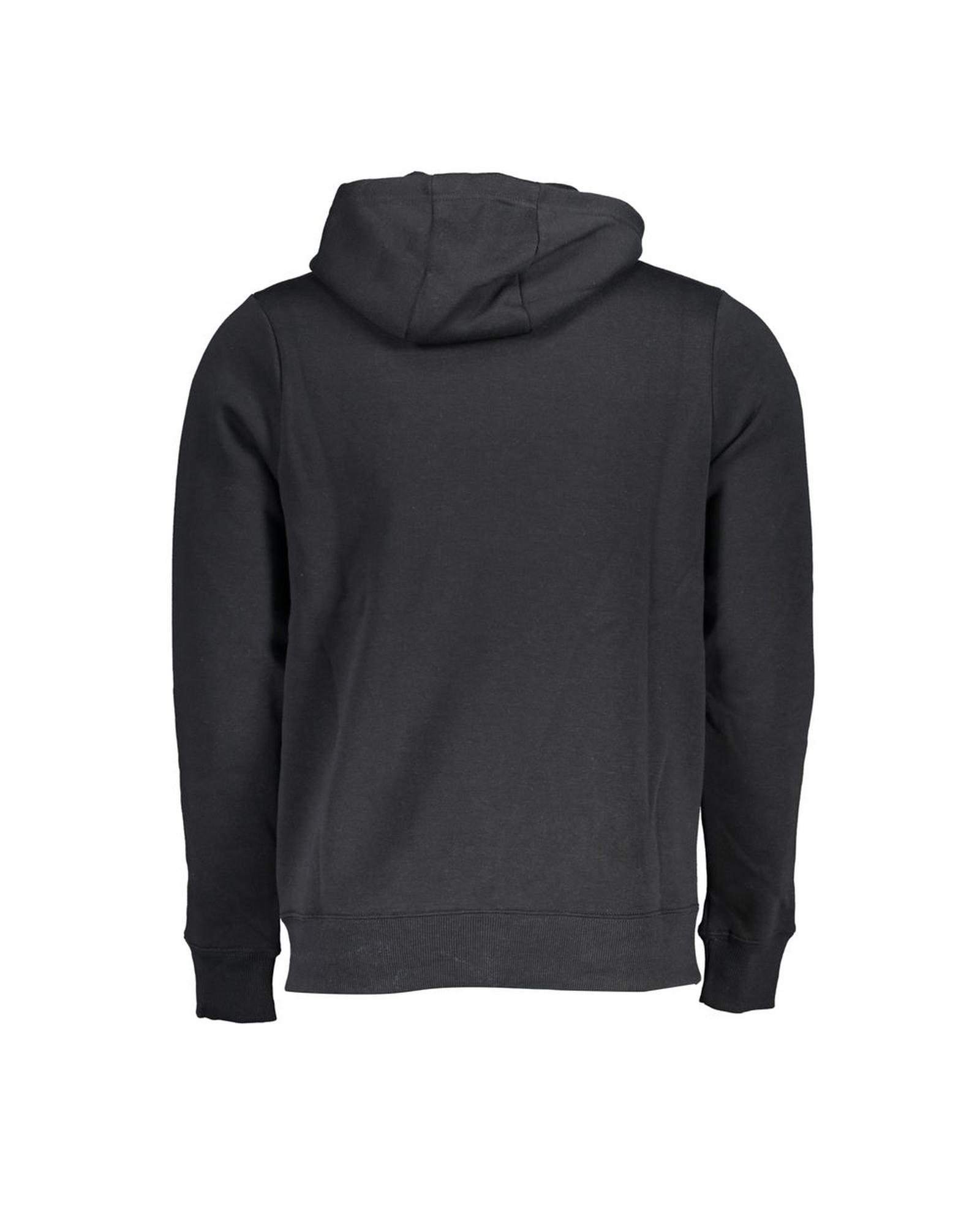 This men’s black cotton sweater offers a comfortable and stylish option for everyday wear. Designed with a hood and fleece material, it provides warmth and a casual look. The sweater features practical details such as central pockets and a zipper closure, making it both functional and fashionable.