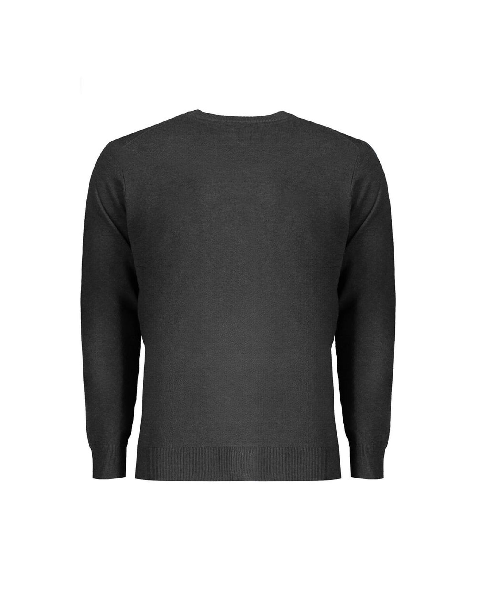 This men’s black wool sweater features a classic crew neck design with long sleeves, making it suitable for various casual and semi-formal occasions. The sweater is accented with an embroidery logo detail, adding a subtle touch of style. Crafted from a blend of polyester, viscose, acrylic, and polyamide wool, it offers comfort and durability.
