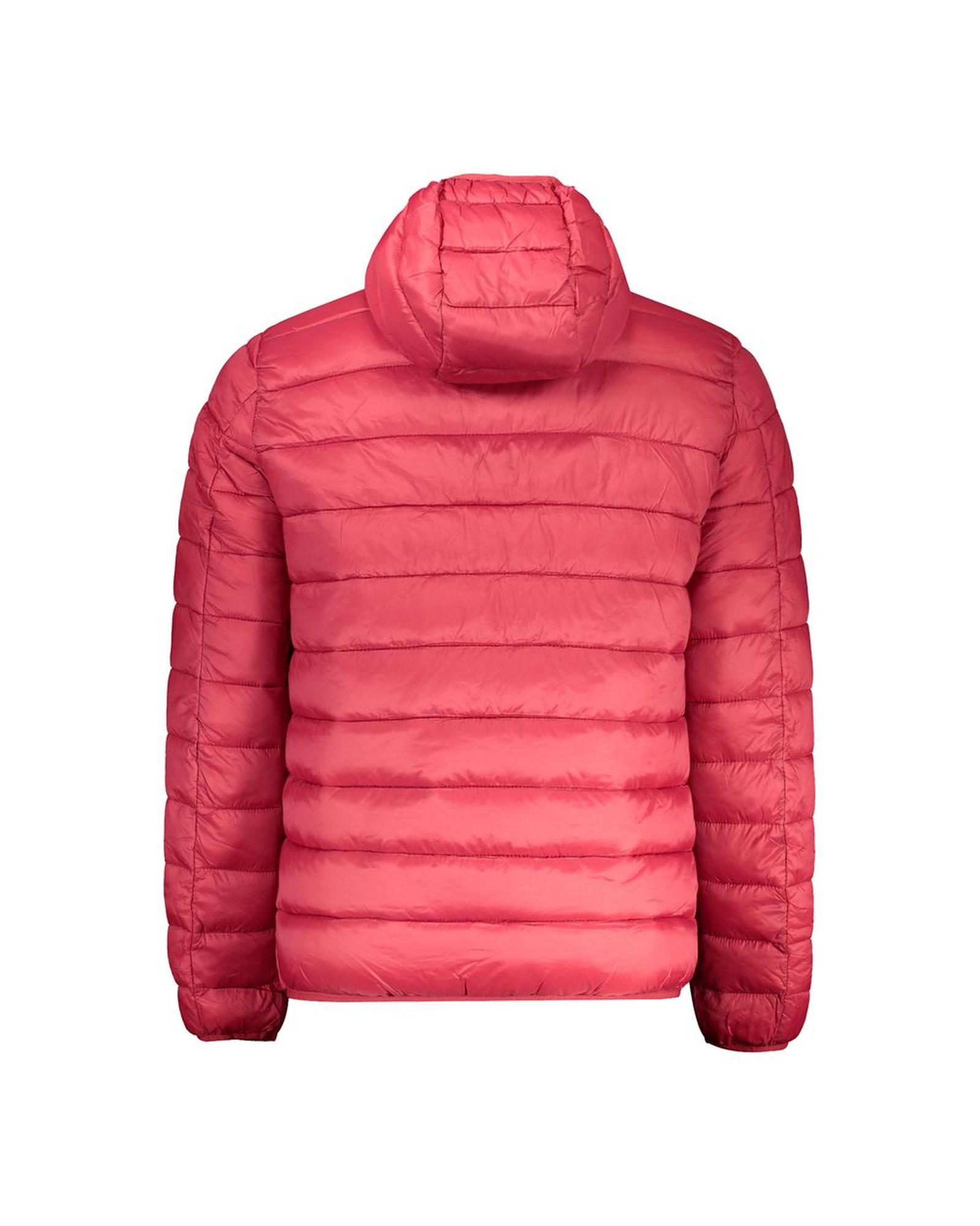 This men’s red polyamide jacket offers a stylish and functional outerwear option. Designed with long sleeves and a hood, it provides comfort and protection in various weather conditions. The jacket features contrasting details and a zip closure, along with external pockets for convenience. A logo application adds a touch of branding to the overall design.