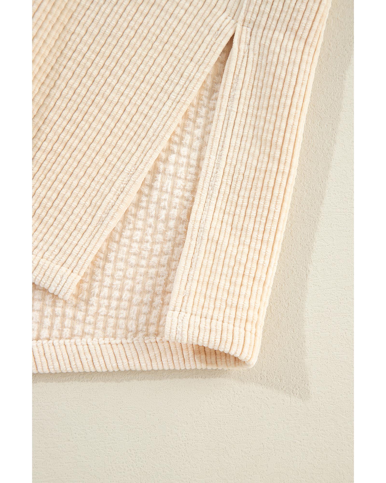 Oatmeal Corduroy Flap Pocket Button Up Shacket – S