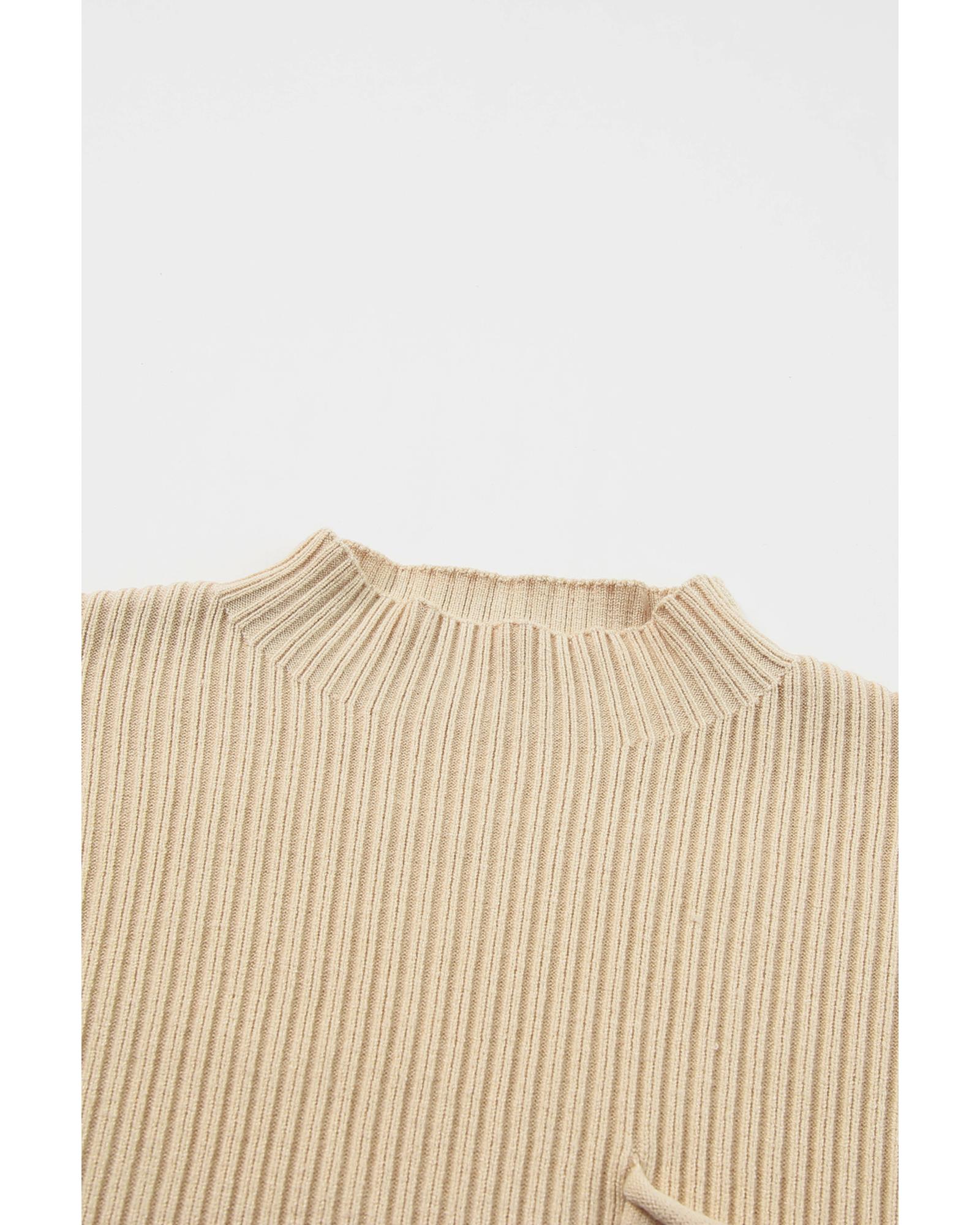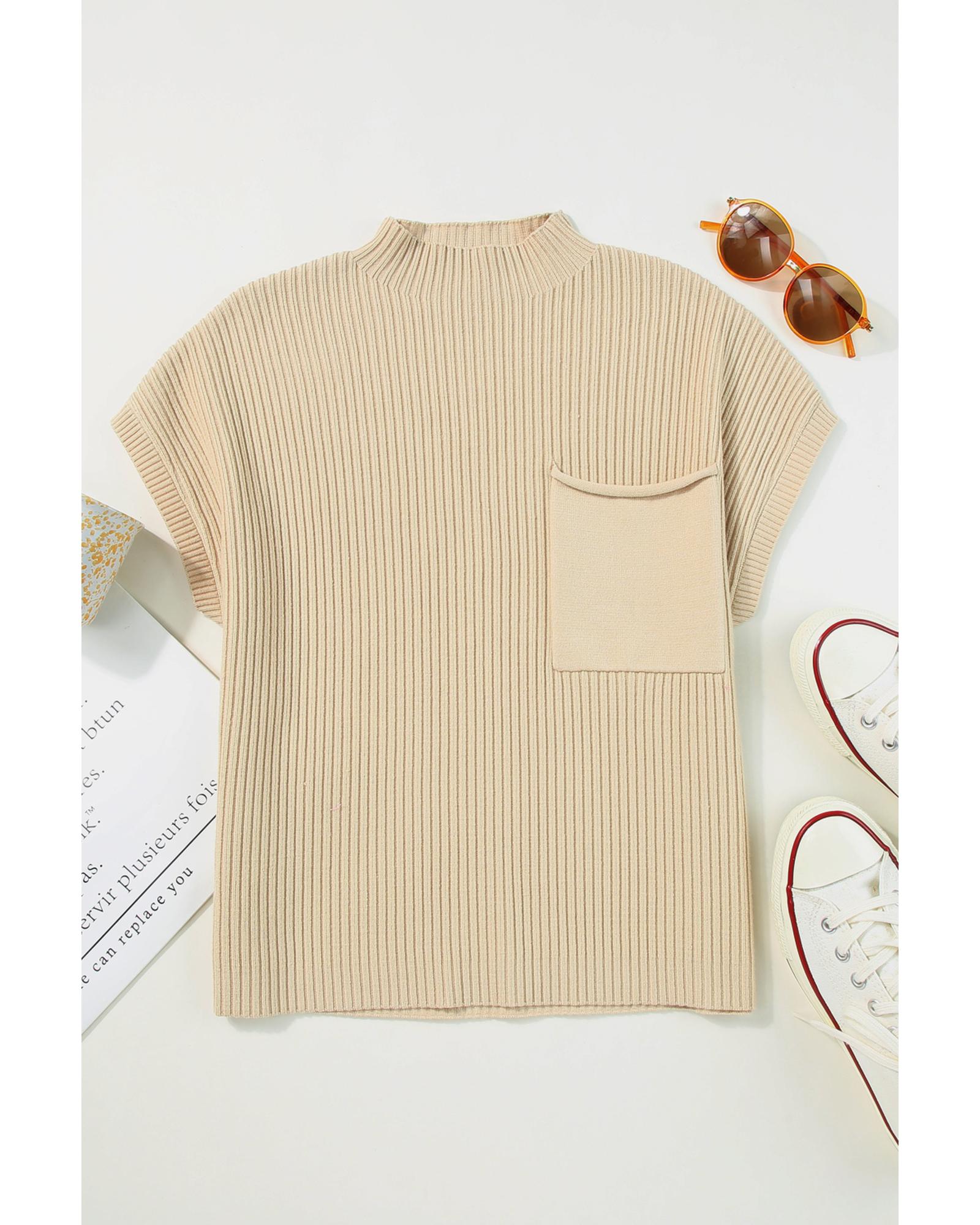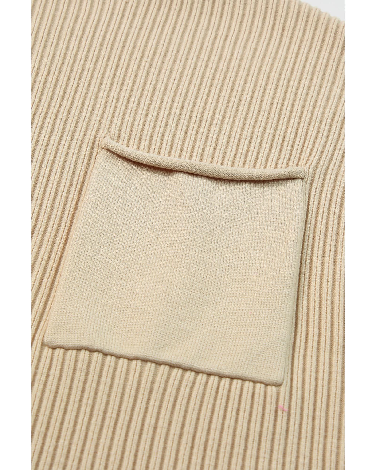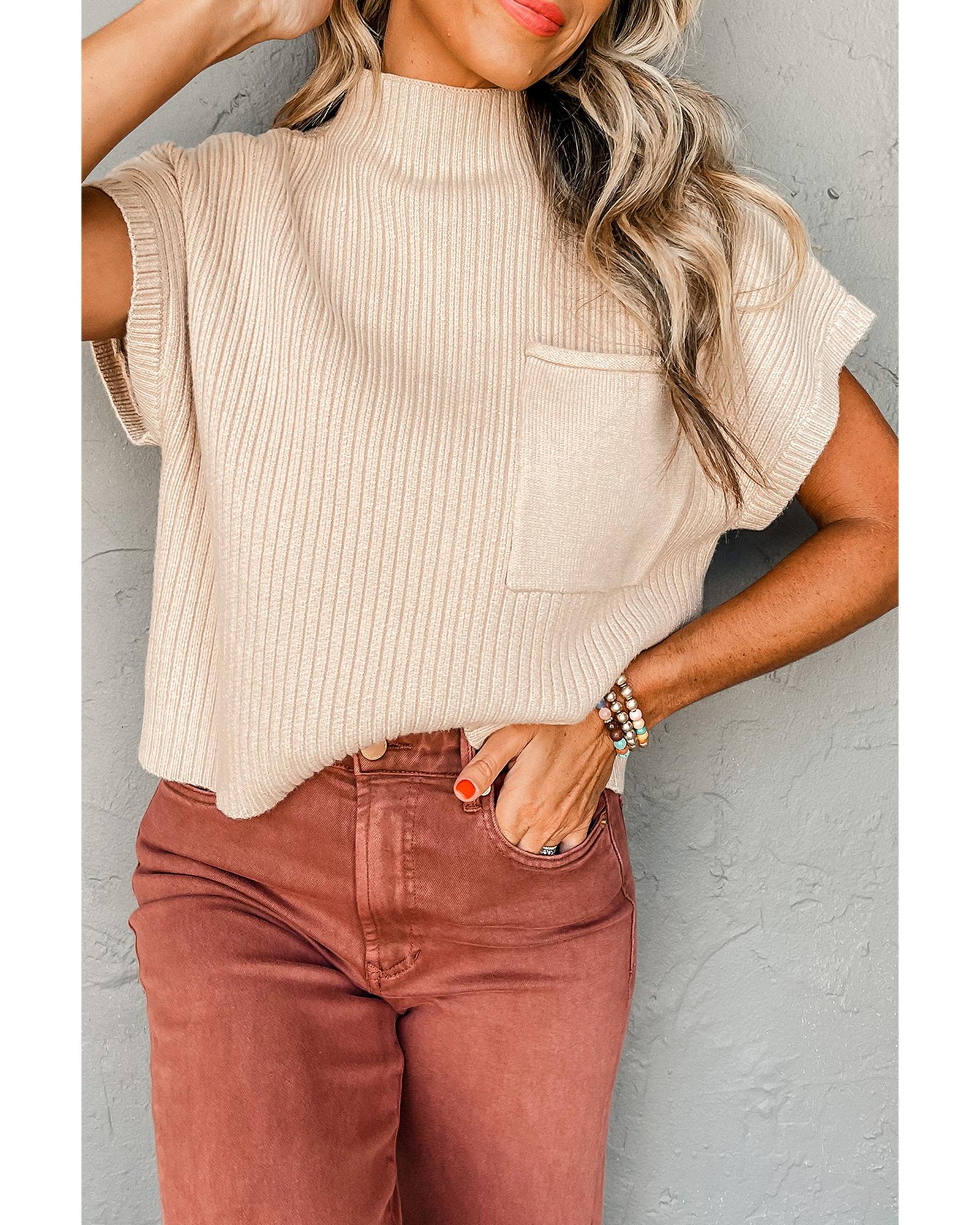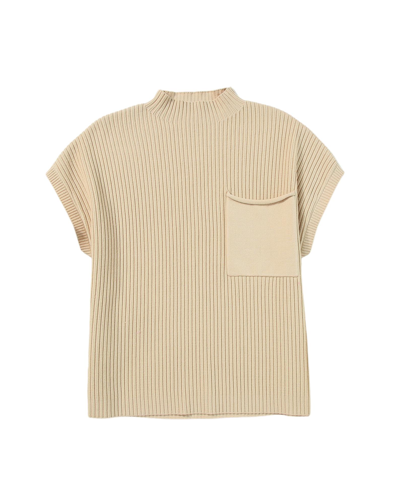 This oatmeal patch pocket ribbed knit short sleeve sweater offers a stylish and versatile addition to your wardrobe. Designed with a trendy fitted look, it features a textured ribbed knit pattern and functional patch pockets, making it suitable for transitional weather and various outfits.