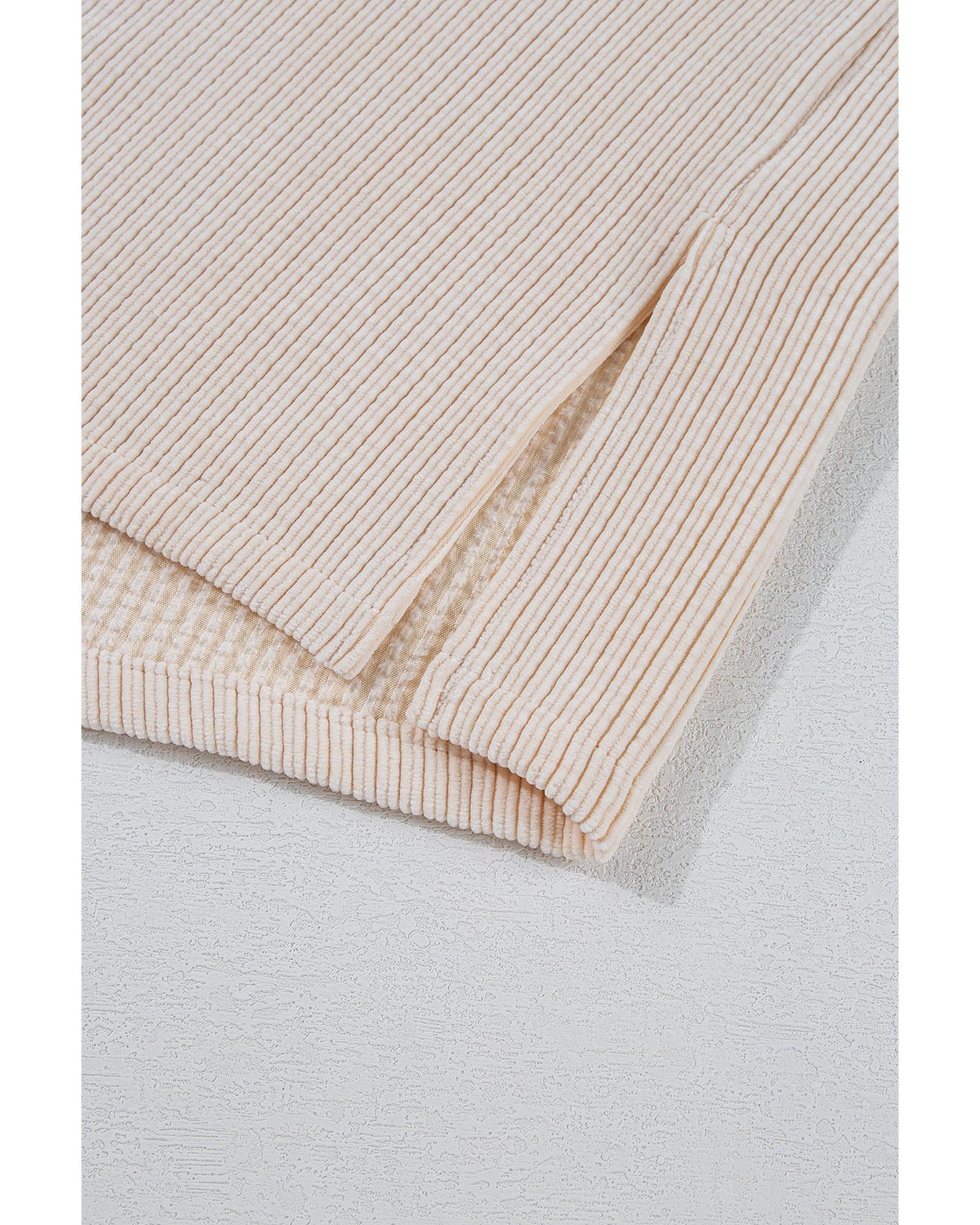 This plus size shacket features a trendy fitted design with a textured oatmeal fabric, making it a versatile addition to your wardrobe. It combines style and practicality, suitable for various occasions and body types.