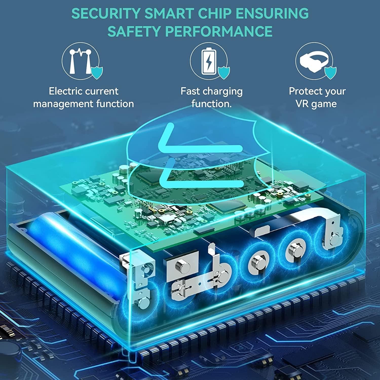 This charging stand is designed specifically for Oculus Quest 2, providing a convenient and space-saving solution for charging your VR headset. It features a compact design that fits perfectly with the device and includes a charging indicator light for easy status monitoring. The stand is equipped with a safety smart chip that manages current flow and supports fast charging, ensuring safe and efficient power delivery. Its easy-to-repair design makes it suitable for use in VR experience rooms or personal setups.